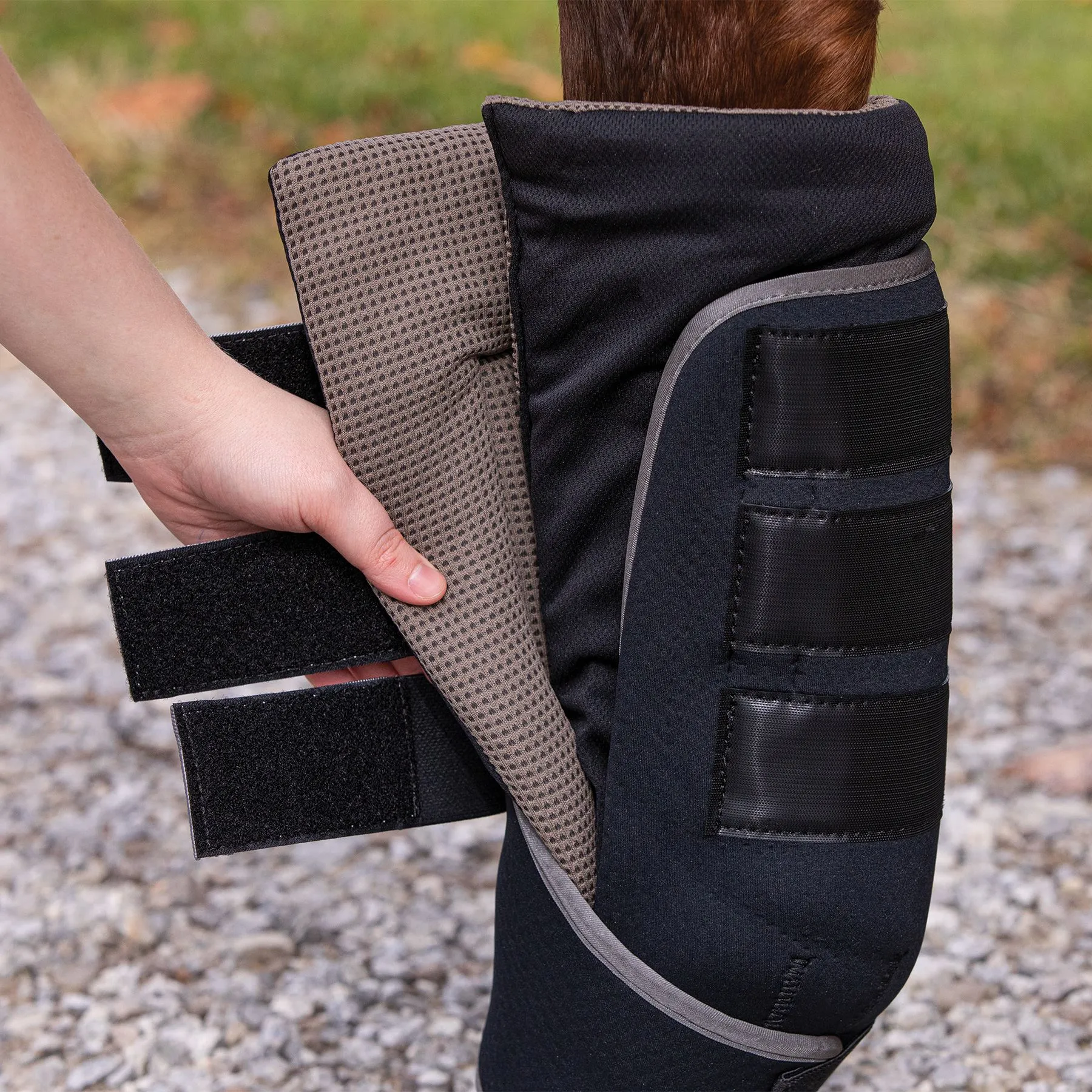 Looking for a way to keep your horse's legs cool and comfortable during transport or while stabled? These innovative eco-friendly bamboo-lined wraps are just what you need! The Aridity™ Bamboo charcoal lining absorbs sweat, keeping their legs cool while fighting off skin irritations, such as scratches, dermatitis, and mud fever, with its antibacterial properties. They're also designed with far-infrared technology that increases the body's natural blood flow to alleviate stiffness and swelling. With these quick wraps, your horse will be well-protected and comfortable.