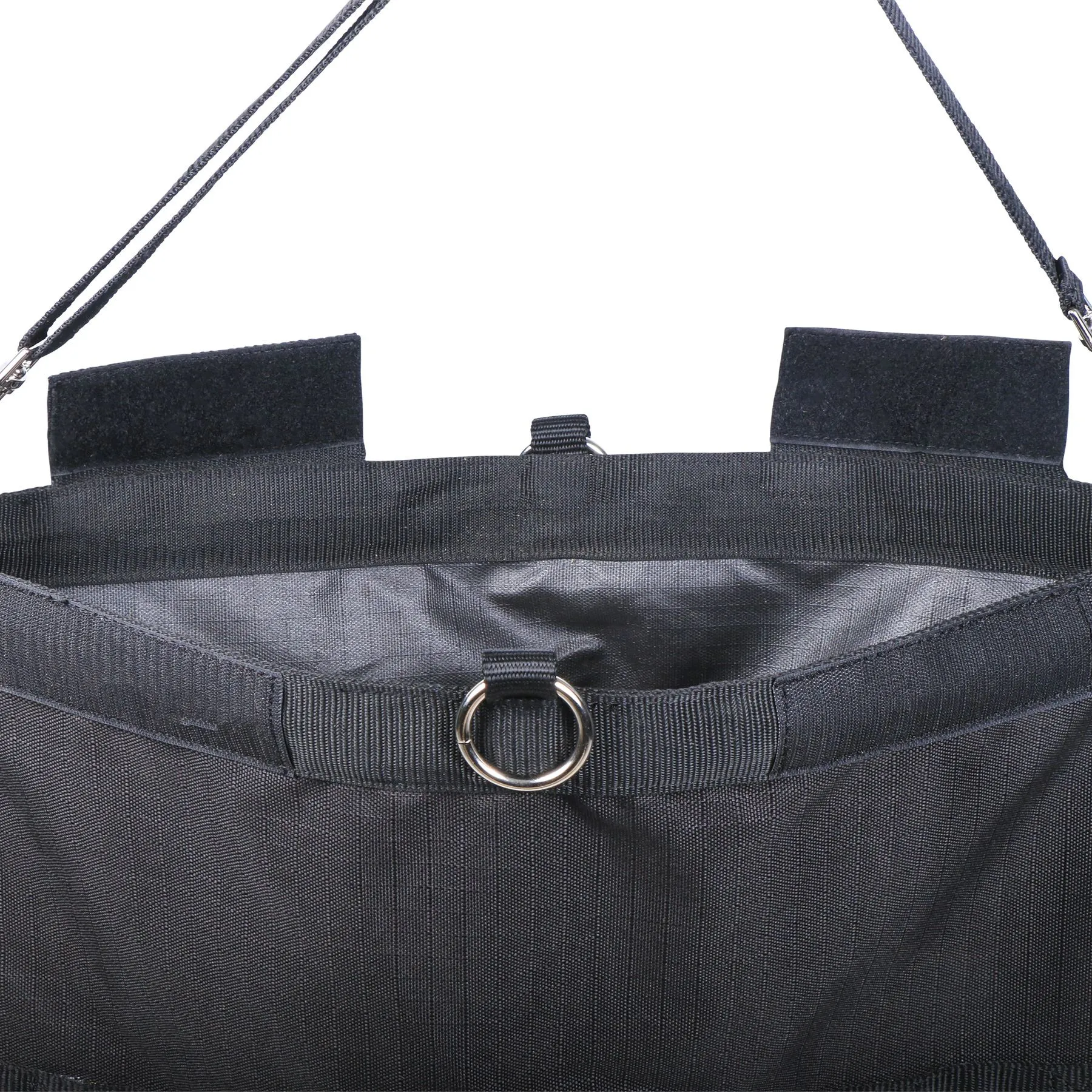 - Hang by the adjustable (detachable) carrying strap, the center O-ring, or D-rings on ends