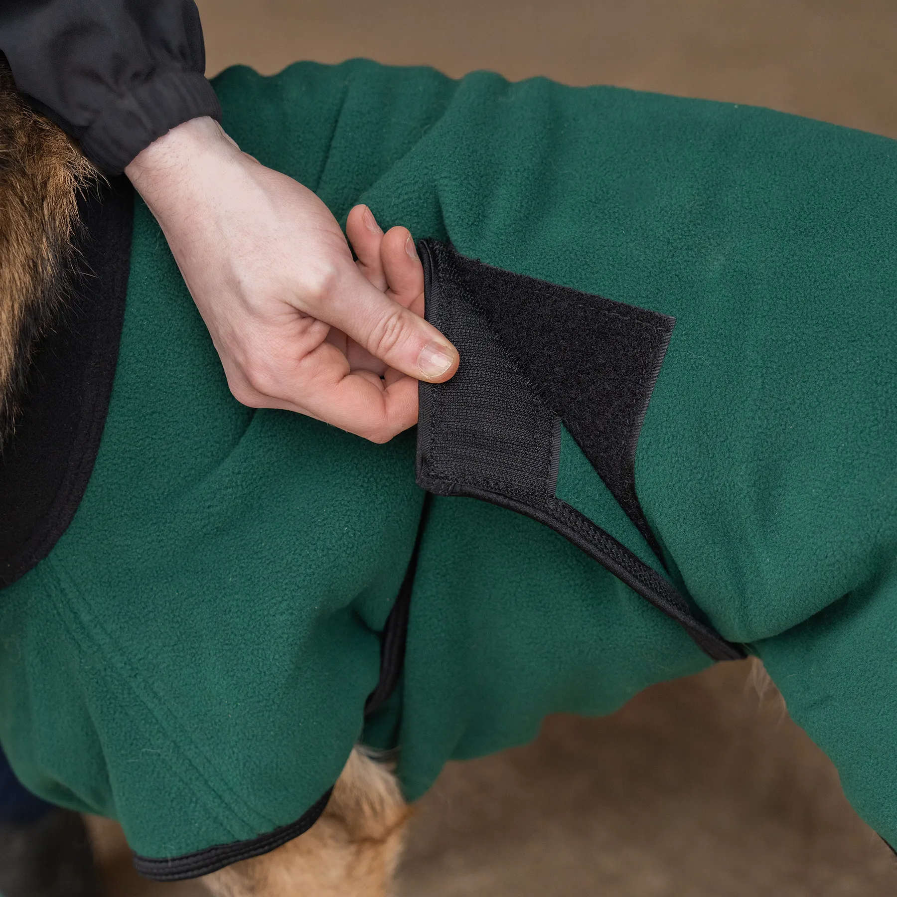 - Bellyband closure with hook and loop for secure fit