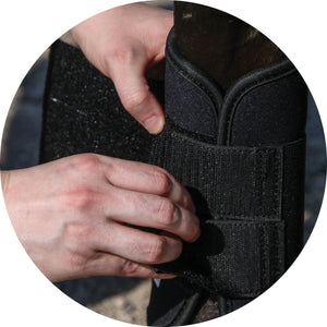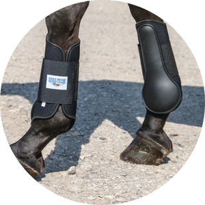 The 1/4" thick-shaped PVC strike plate covers your horse's splint bone and ankle. This plate provides extra impact protection from interfering lateral movements, jumping, or play during turnout.