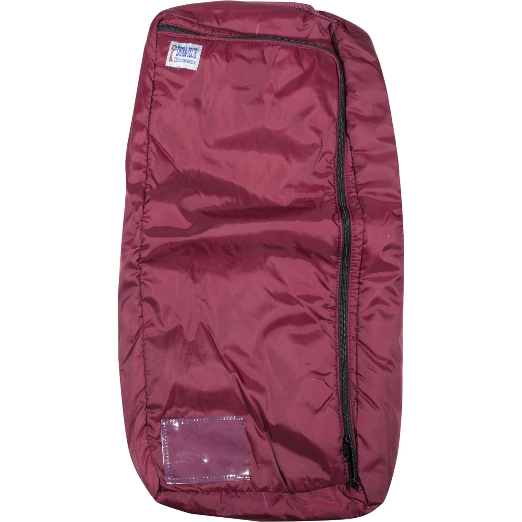 Maintain your halters and bridles in pristine show condition using the Dura-Tech® Padded Halter and Bridle Bag. The durable and water-repellent nylon bag, with quilted lining, doubles as protection for your halter or bridle. It also features a heavy-duty zipper that grants easy access to your tack. Inside the padded bag, 2 nylon snap straps secure your tack. The exterior offers a reinforced nylon web handle with a vinyl ID pocket for easy identification. It can be embroidered or silk-screened for beautiful and practical awards.