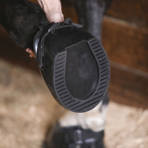 This protective rubber hoof boot is a must-have for horses needing extra support between trims or after losing a shoe. These boots are easy to slip on, featuring a durable rubber traction bottom that ensures a non-slip finish. Not just for looks, these boots are designed with a 1" wide adjustable web strap to keep them securely in place, offering peace of mind and unbeatable protection.