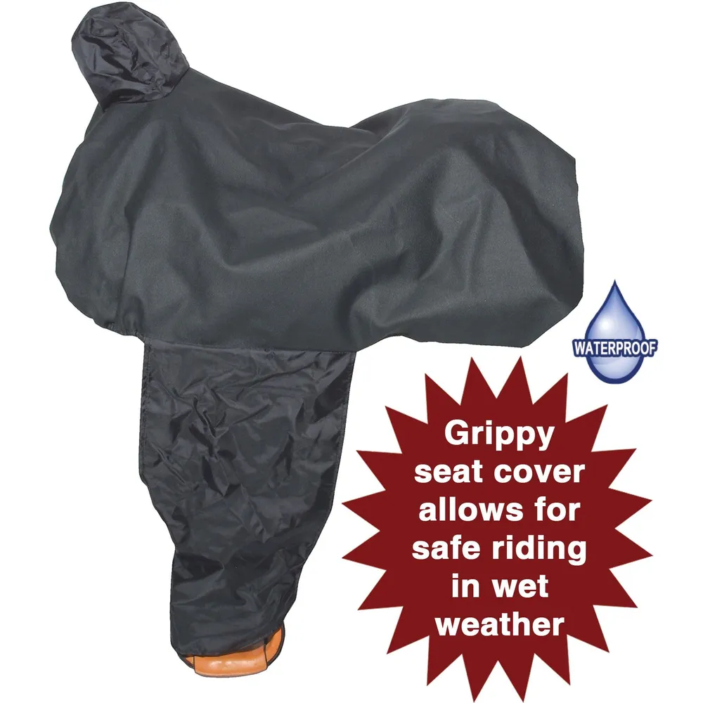 The Dura-Tech® Sureseat Waterproof Western Saddle Cover is an excellent choice for riders who need a saddle cover to keep their saddle protective in all weather conditions. The heavy-duty PVC is waterproof, and the grippy seat prevents the rider from slipping in wet weather. The elastic straps ensure a secure fit, and the cover folds compactly for easy storage.