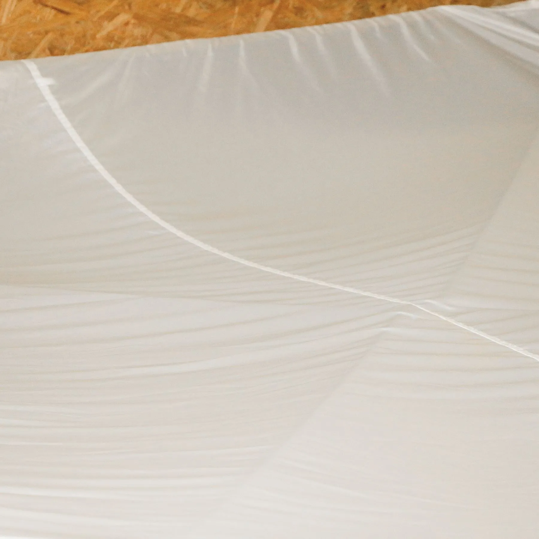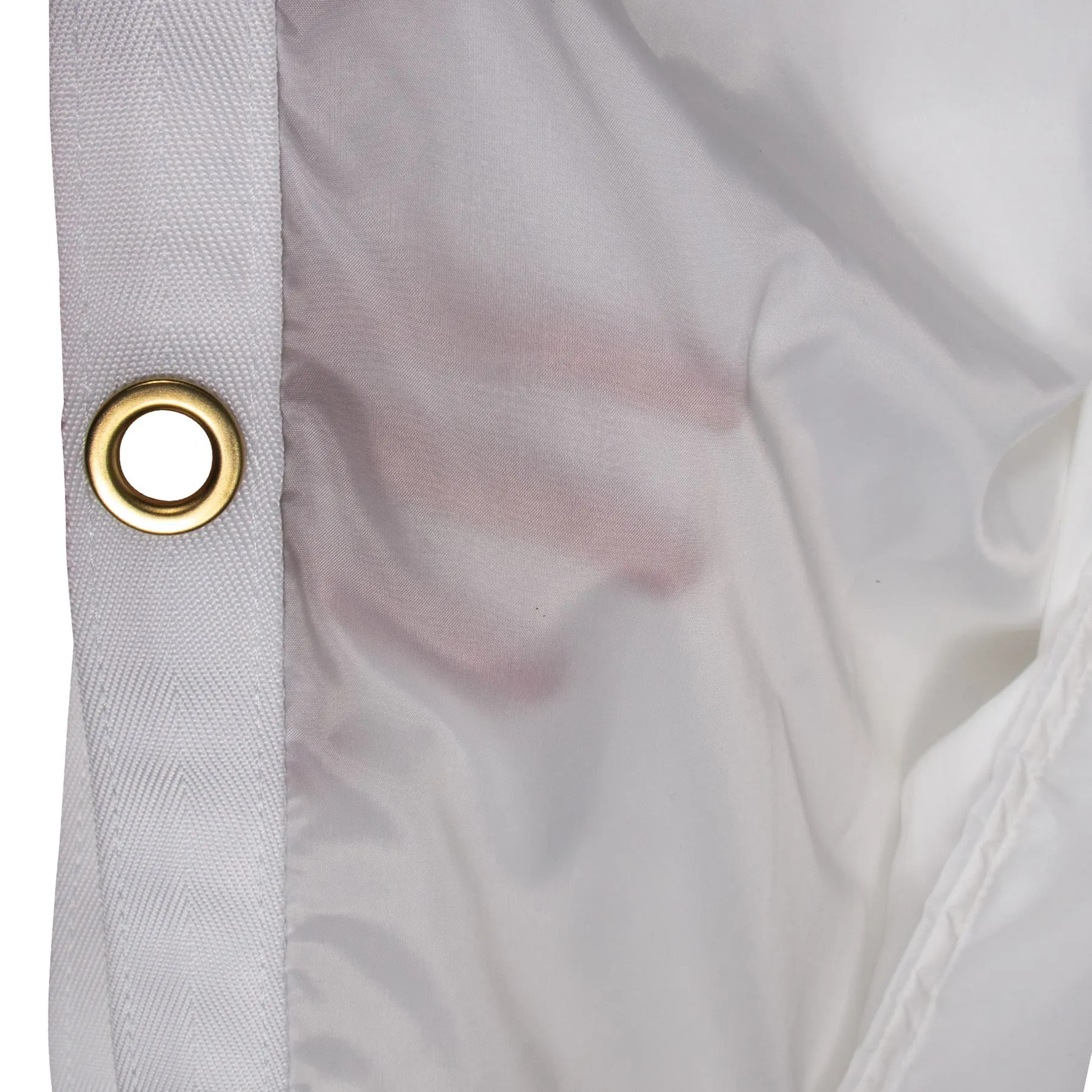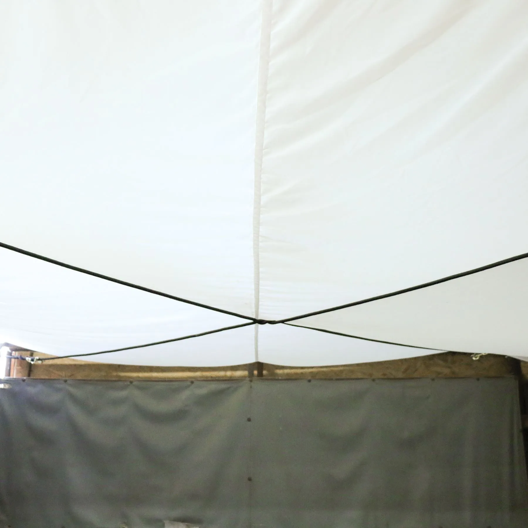 When it comes to horse shows, don't let dust and debris ruin your expensive tack and show clothes. This horse show tack room ceiling cover is the perfect solution for easily covering the ceiling of your tack room, adding privacy and protection. Made of white nylon material, it allows light to shine through, keeping your tack room lit throughout the day. A reinforced webbing border with grommets allows for easy installation, and the MCR ropes (included) on both diagonals support the weight of the nylon panel to keep the center roof supported. Adjustable slide hardware allows for a perfect fit on almost any 10'x10' or 12'x12' stall.