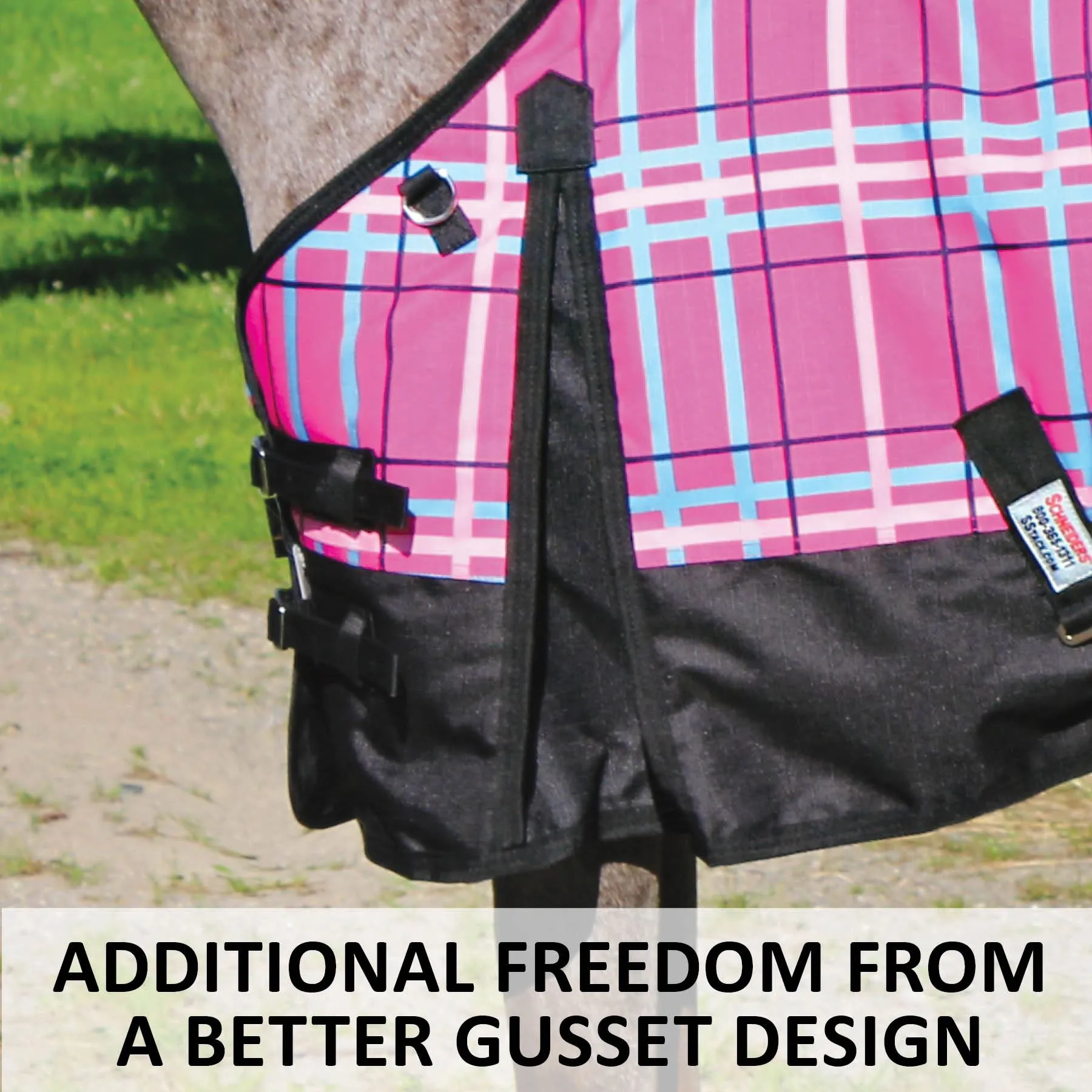 The most accurate and easiest way to determine your horse’s blanket size is to measure along the side of their body, from chest to tail. First, stand the horse square on a flat surface. Measure from the center of the chest, straight back to the very edge of the tail. Make sure to measure along the widest part of their shoulder and hindquarters. The number of inches measured in this way is your horse’s size. Look on the size chart for any Schneiders blanket for this number of inches to order your horse’s perfect size.