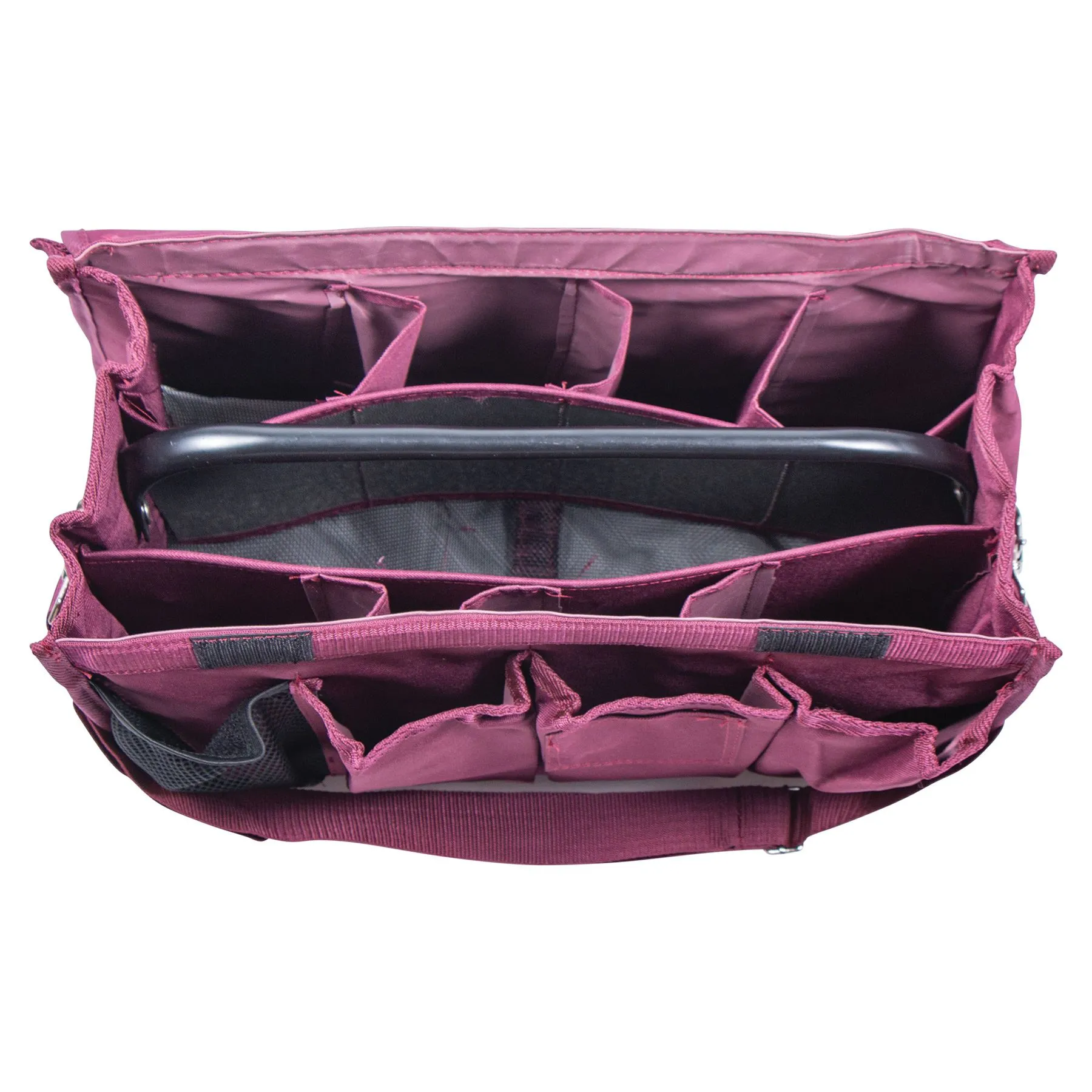 Say goodbye to cluttered grooming supplies with this extra-large grooming tote, your ultimate solution for keeping your horse's grooming essentials clean and organized. Made from a durable polyester fabric with multiple pockets, your gear will be easy to store and access. This tote is designed to tackle any storage challenge and features a mesh bottom and dust cover to keep dirt and debris at bay.