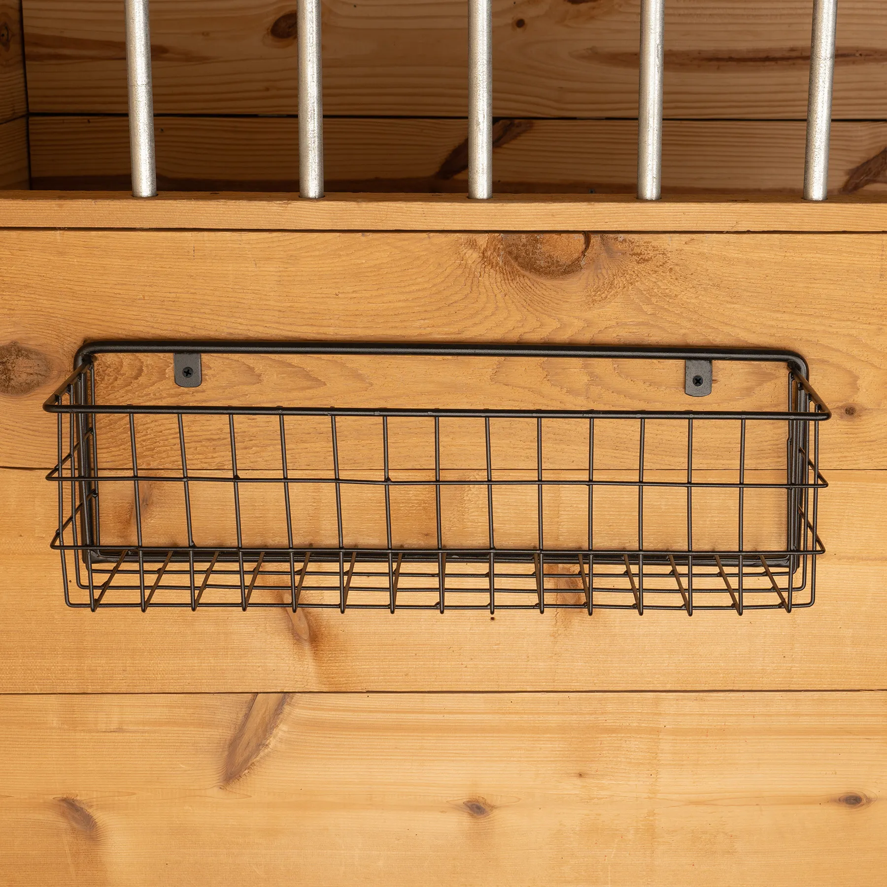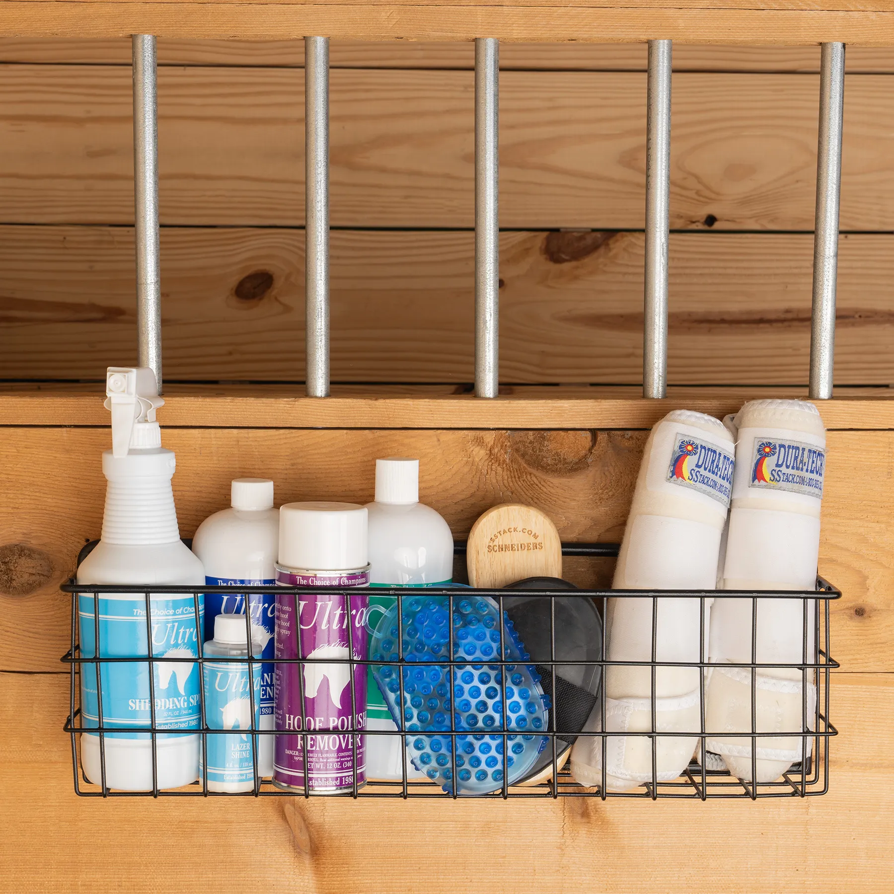 - Wire stall-front basket for holding bottles, boots, grooming supplies, and more