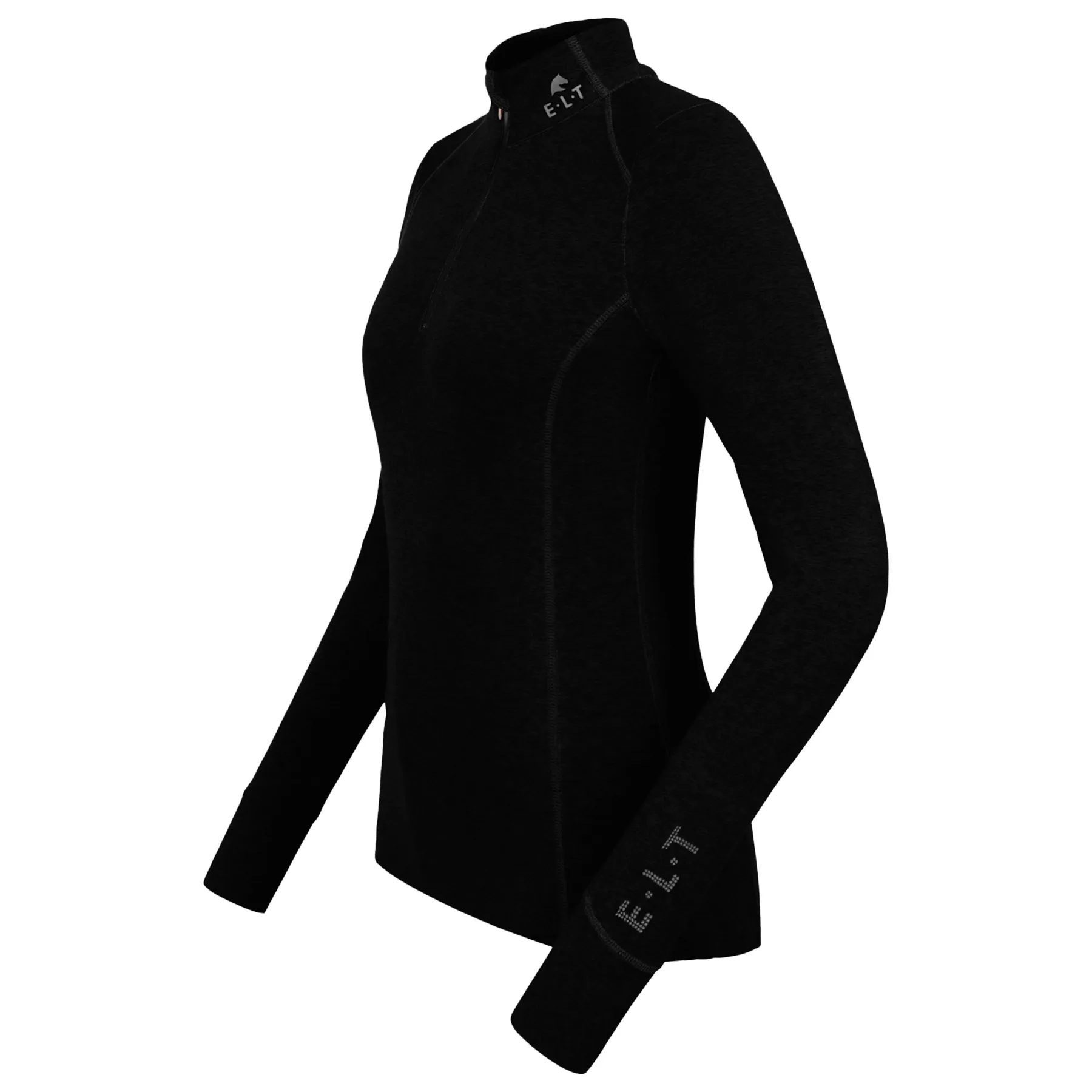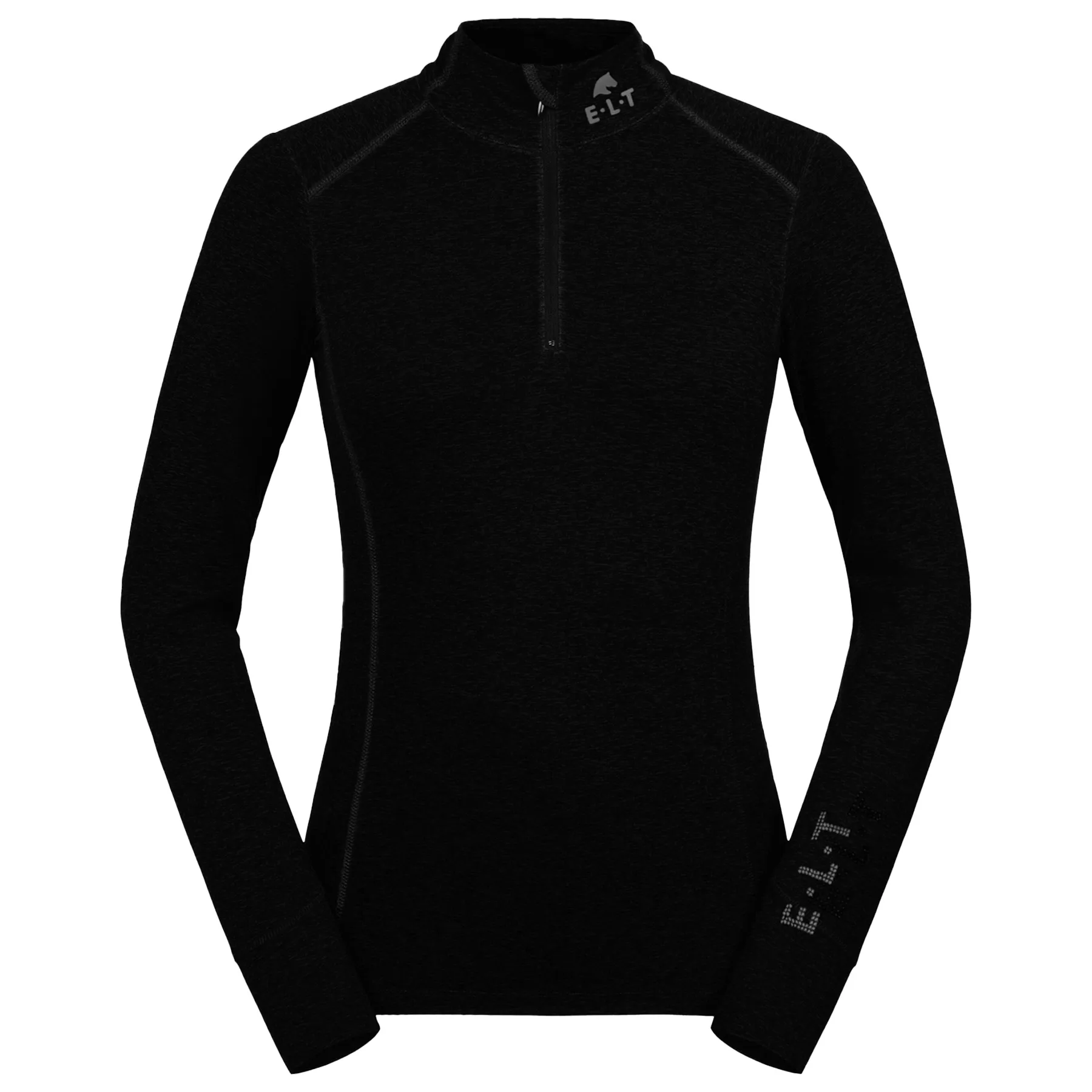 Stay stylish in the saddle with this fashion-forward 1/4 zip shirt designed for performance and polish. Made with breathable technical fabric, it features a tailored fit, high collar, and subtle sparkle details for that extra flair. Whether training or layering at a show, this long-sleeve top brings comfort and elegance to every ride