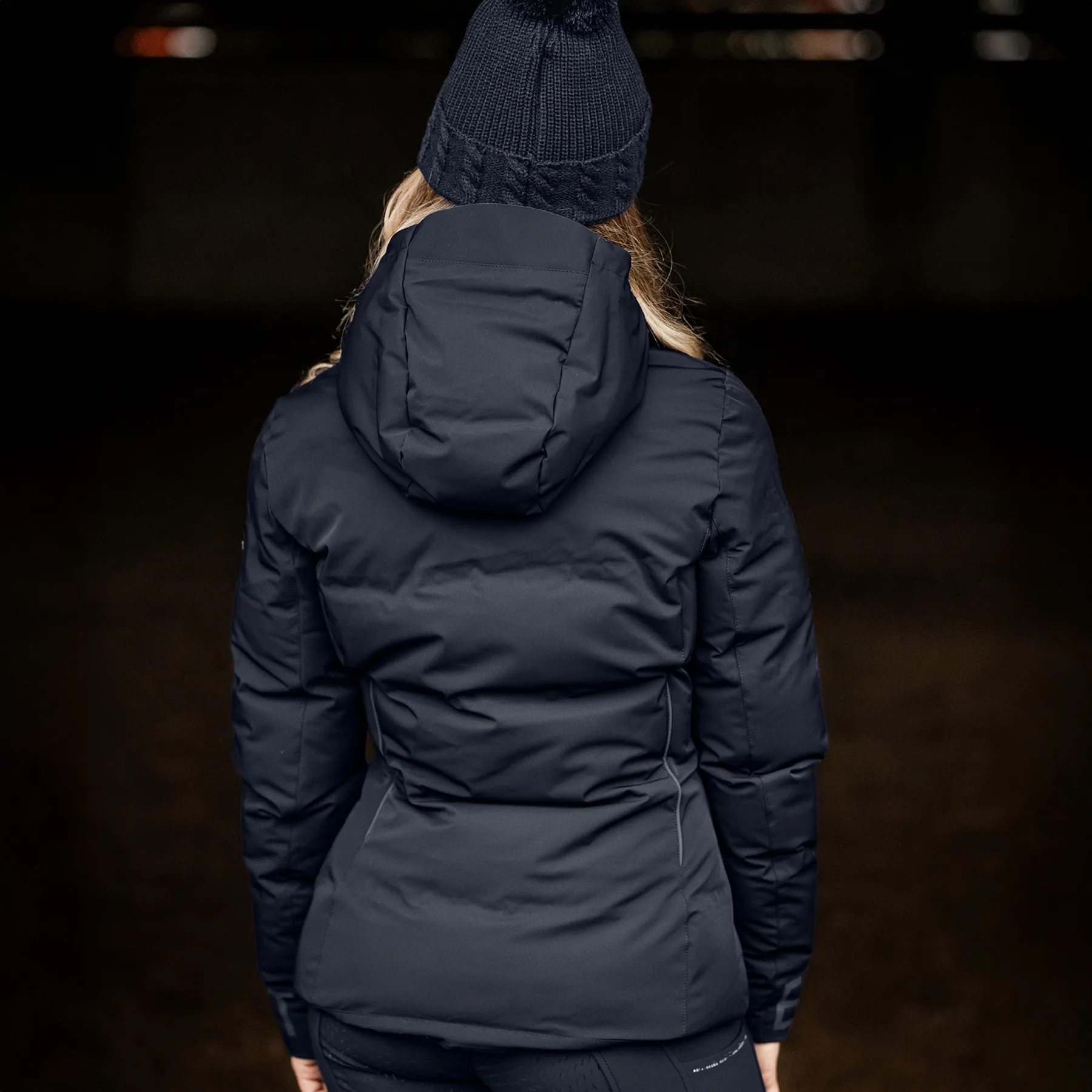 Ride in warmth, comfort, and style this winter with the ELT Ladies Ohio Winter Performance Riding Jacket. Designed with a slightly tailored fit and lightweight down-like padding, this jacket balances fashion with serious function. Fully waterproof, windproof, and breathable, it keeps you protected during cold, wet rides without overheating. Details like sealed seams, a detachable adjustable hood, and reflective back stripes ensure comfort, safety, and performance, on and off the horse.