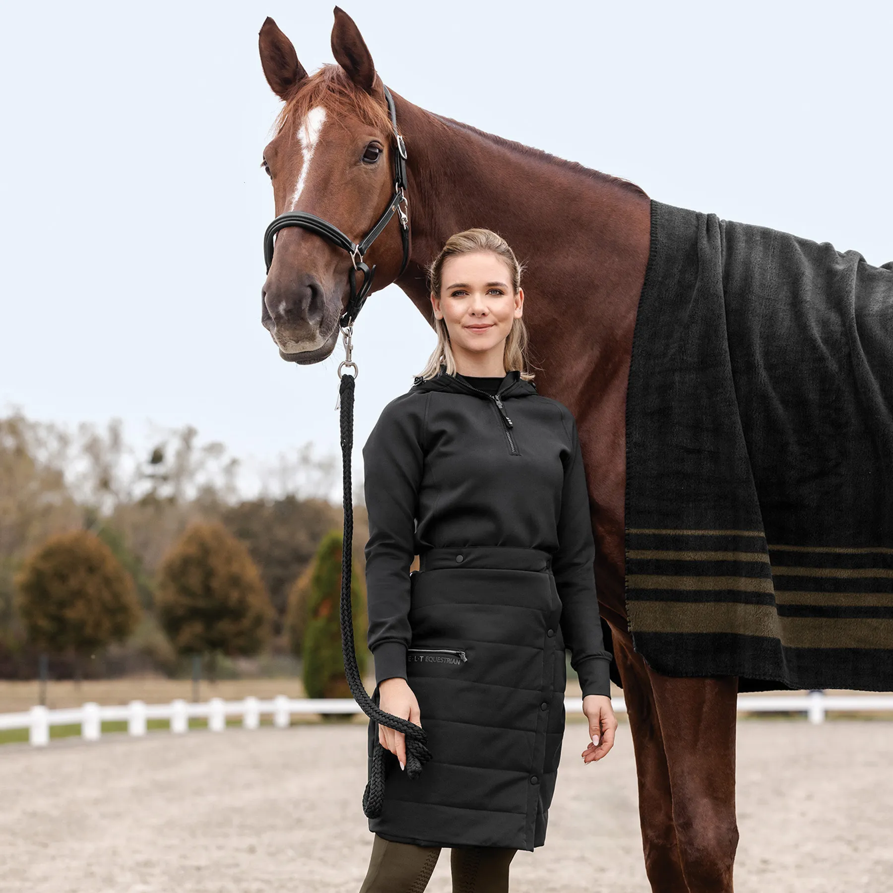 Stay warm, dry, and stylish during chilly barn days with the ELT Ladies Rachel Thermal Riding Skirt. Designed with fleece lining and water-repellent material, add this skirt to your riding outfit for functional warmth without sacrificing freedom of movement! Trust us, this is perfect for layering over breeches during winter rides or barn chores.