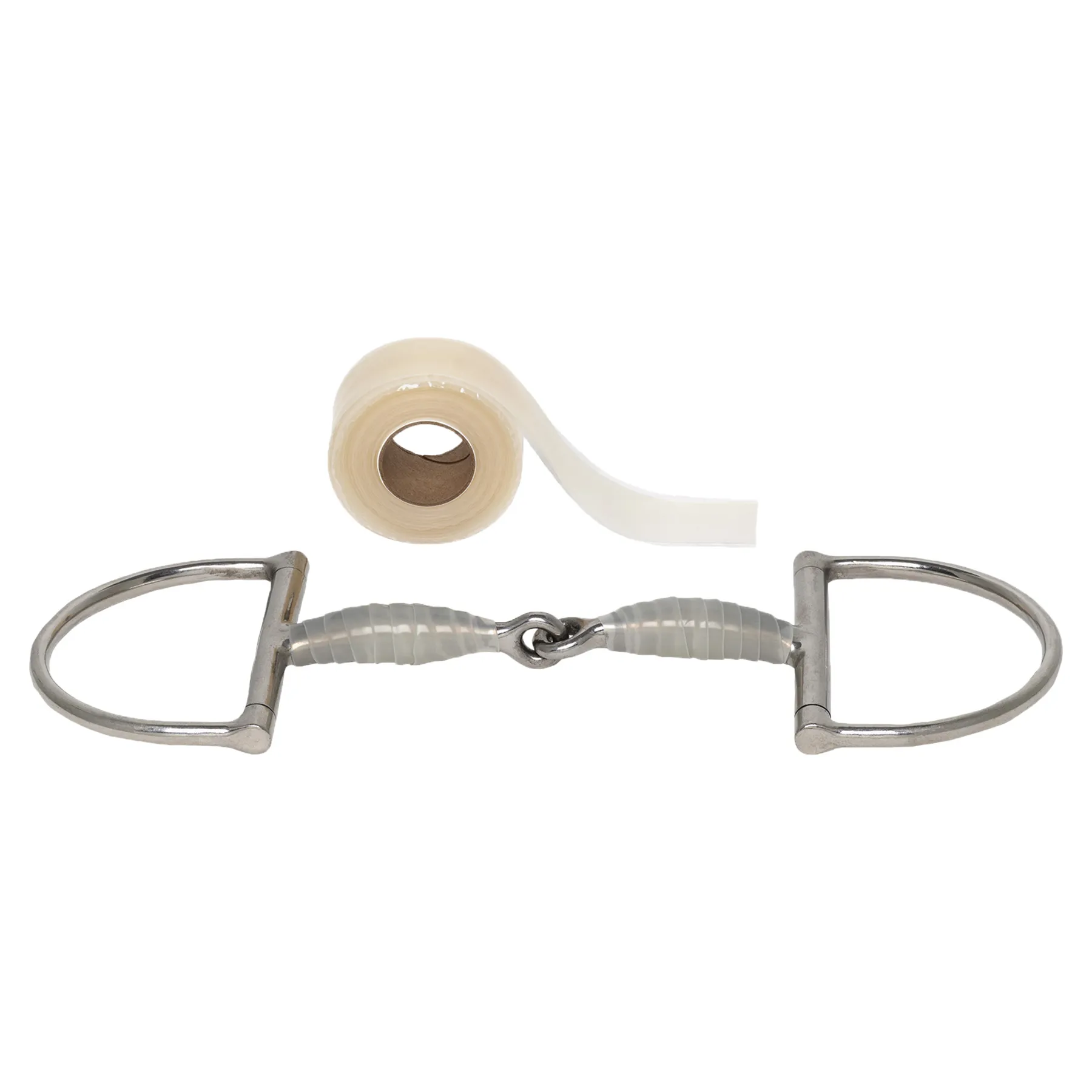 This bit tape is a new approach to a long-trusted training aid! It's a discreet and comfortable silicone wrap that helps prevent bit-pinching while creating a gentle feel that horses love. You can use it in many ways, including aiding in bit repair by creating a smooth surface on chewed-up bits, softening the bit for sensitive horses, or as an alternative to bit guards by preventing pinching. It self-adheres and can be cut to your preferred length for multiple uses depending on the application, style of bit, and horse. Includes a resealable plastic bag that keeps out dirt, air, and moisture.