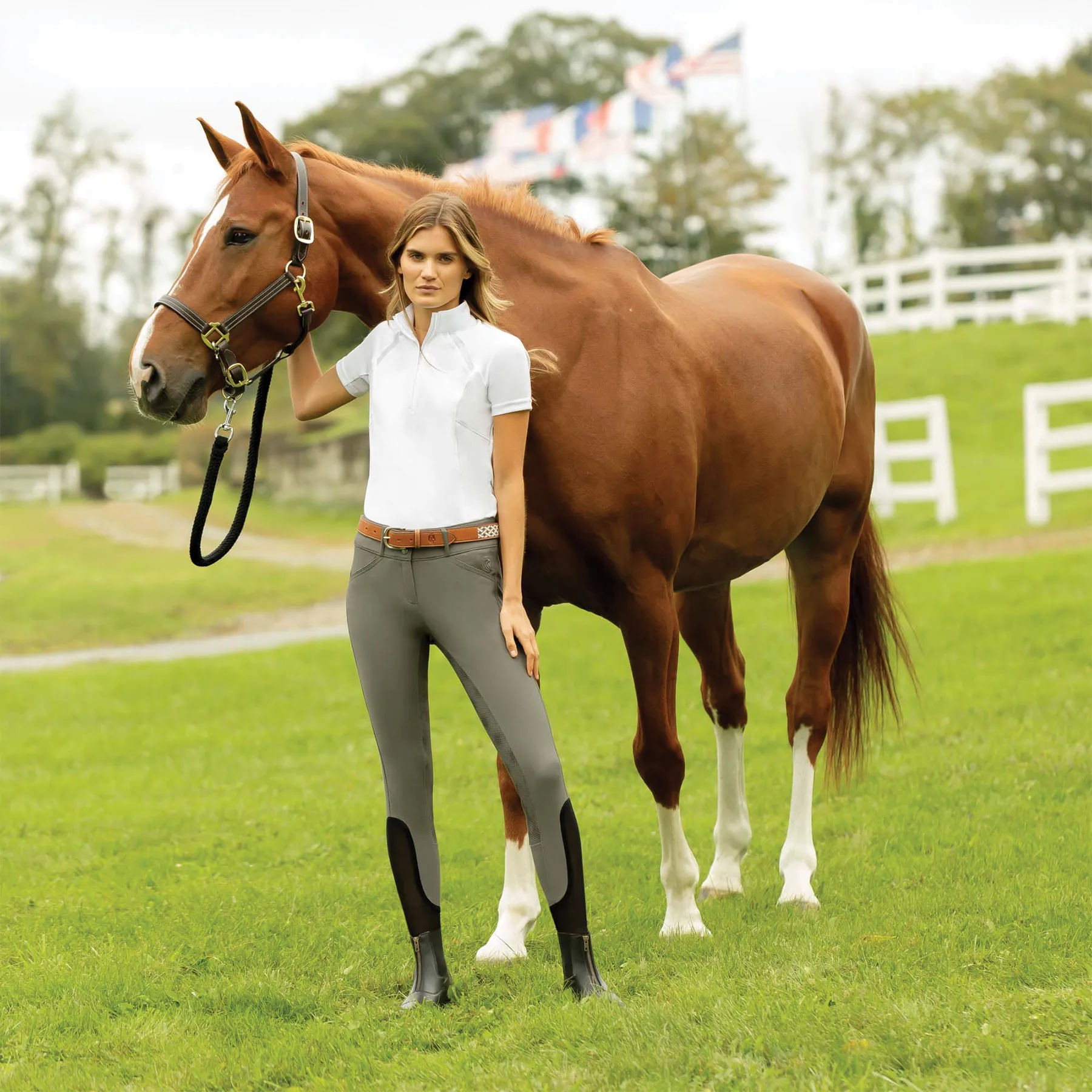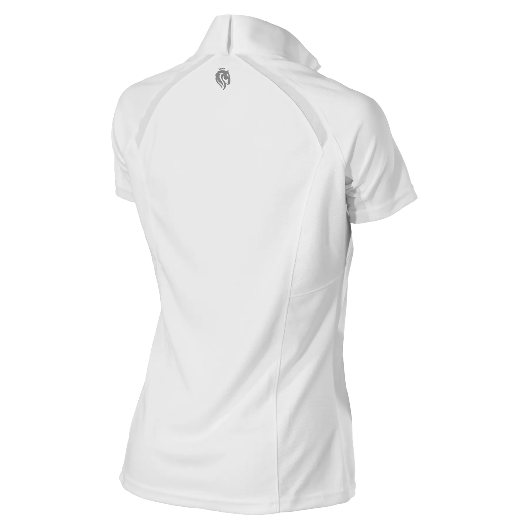 The Equinavia Ladies Ingrid Short Sleeve Show Shirt combines performance-ready features with elegant style—all at an unbeatable value. Lightweight and breathable, this shirt is built to keep you cool under pressure with mesh shoulder inserts and moisture-wicking fabric. Its contoured fit, stock tie loop, and hidden zipper placket give it a clean, polished look under your show coat.