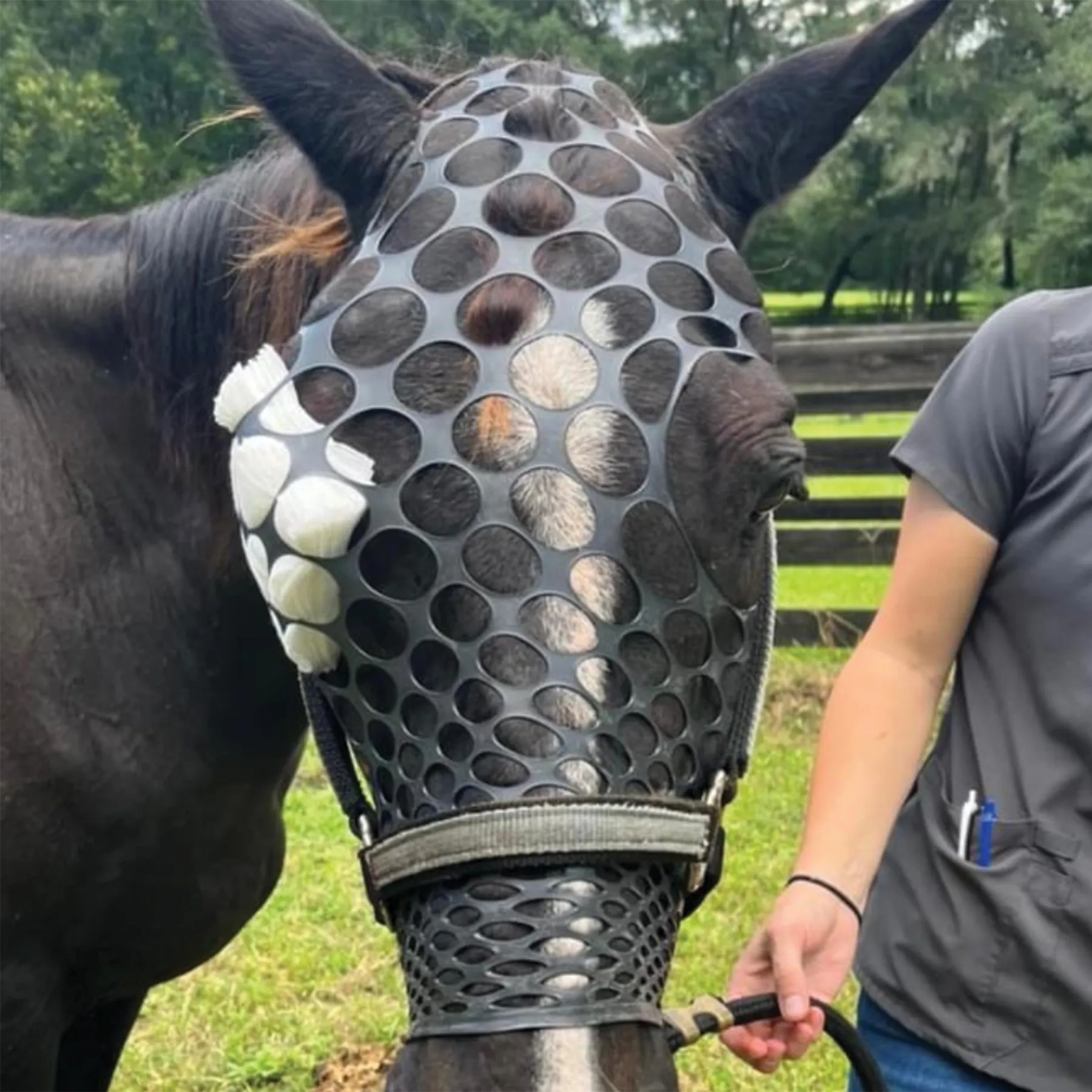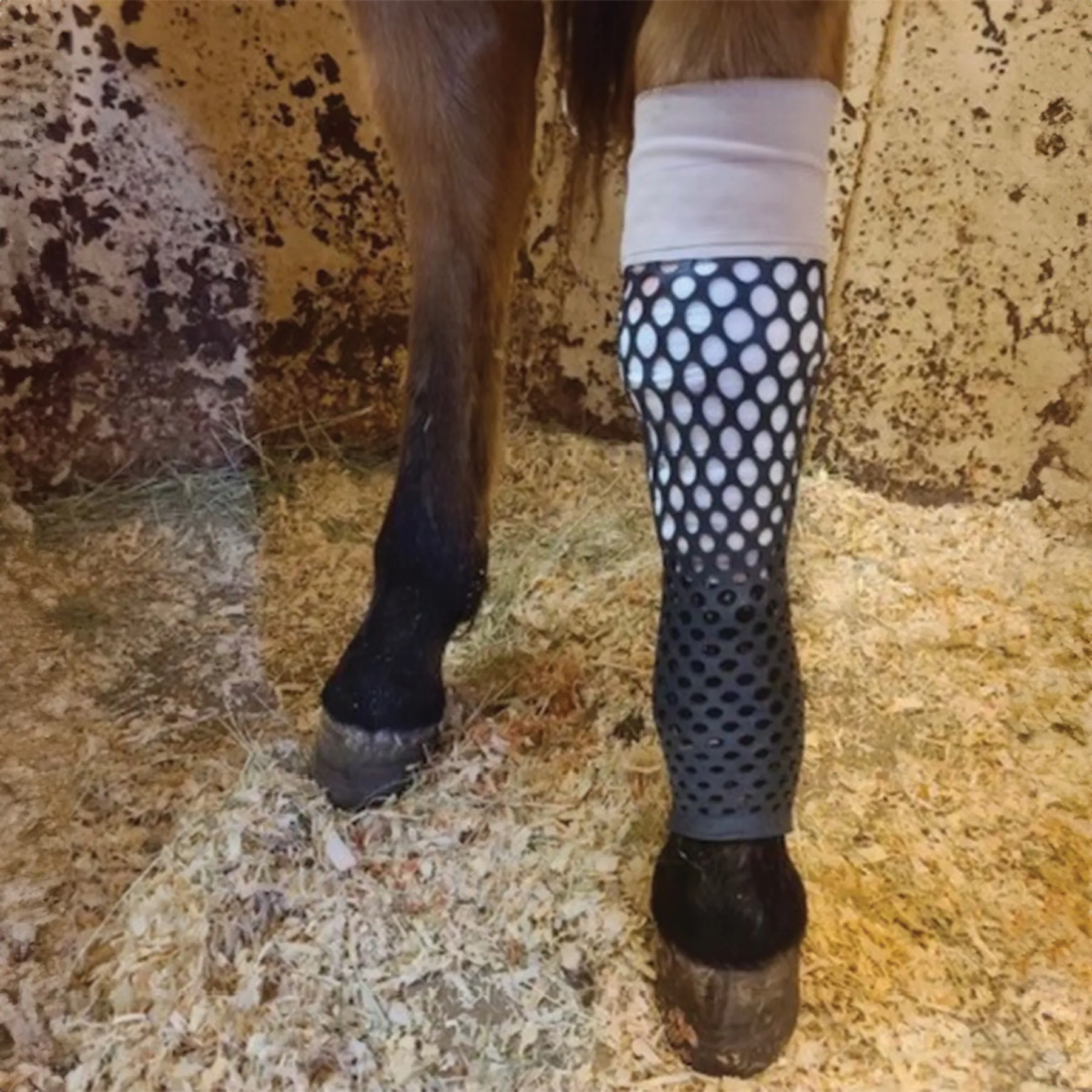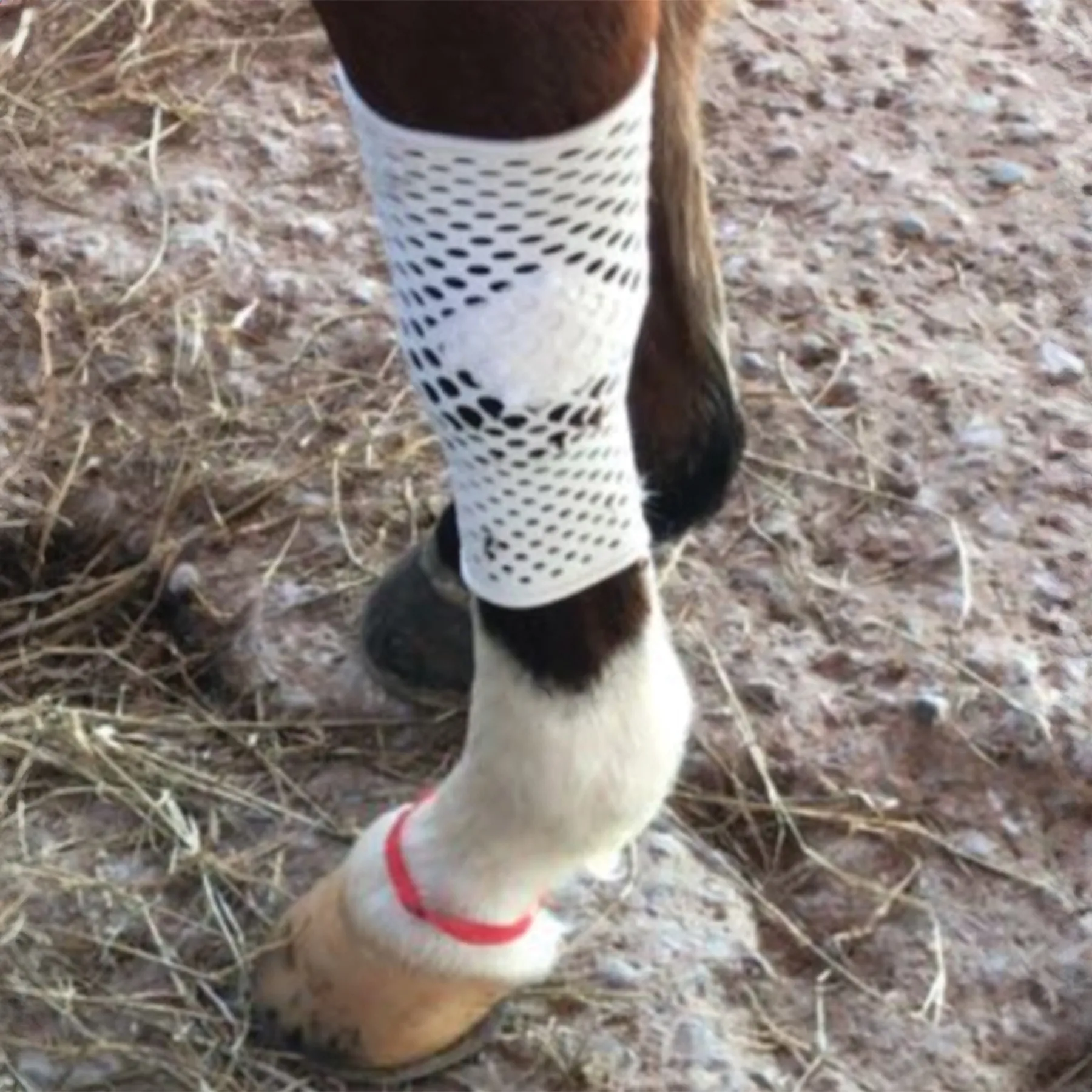 ”The equine sleeve product is a game changer! The elastic material stretches very easily, and holds the bandages up. The slotted sleeve allows for maximum airflow while holding a bandage tight to a wound. Gone are the days of hoping the wraps stay up! After you use them, just spray them off and you are ready for the next time. We recommend you put a couple of these in every vet box!”