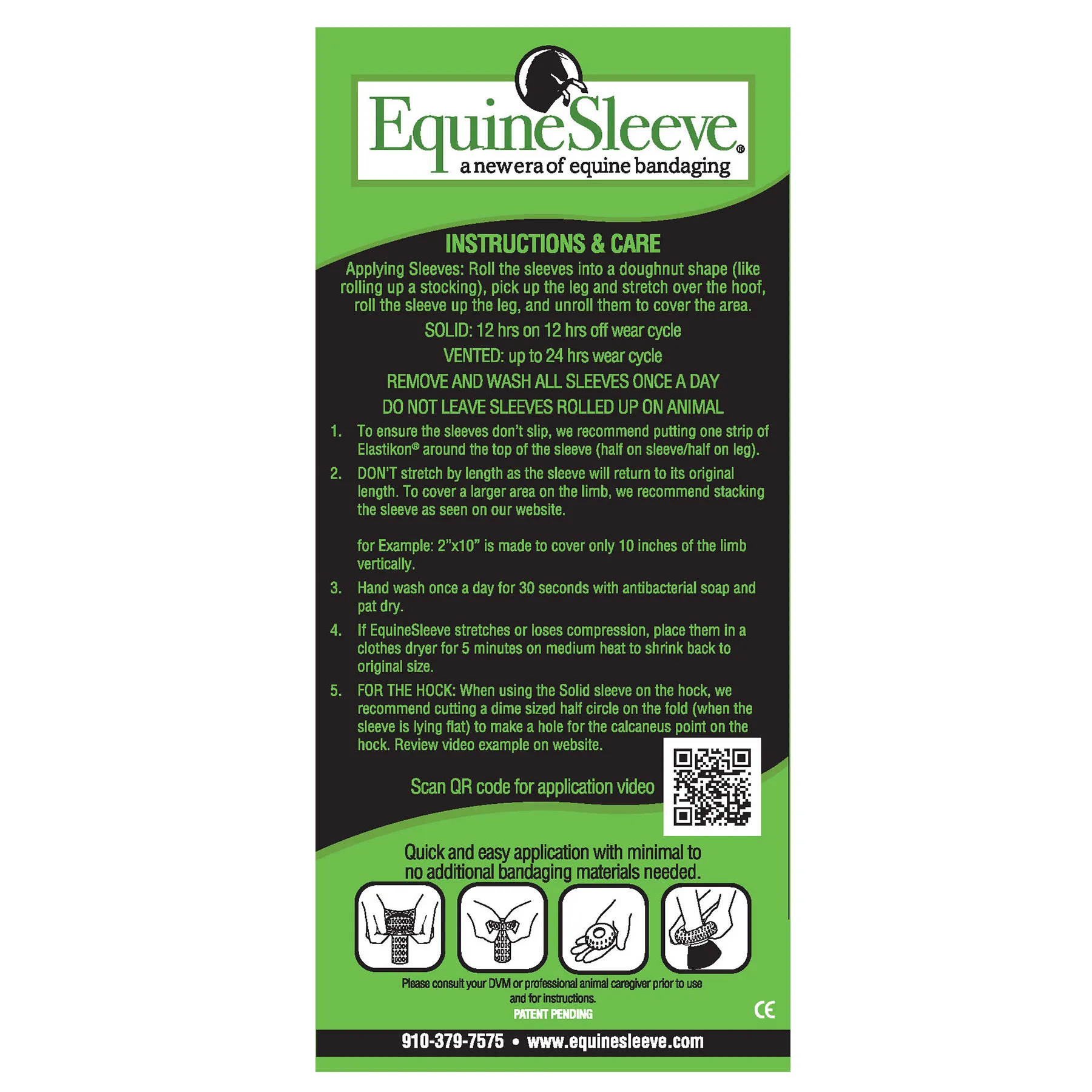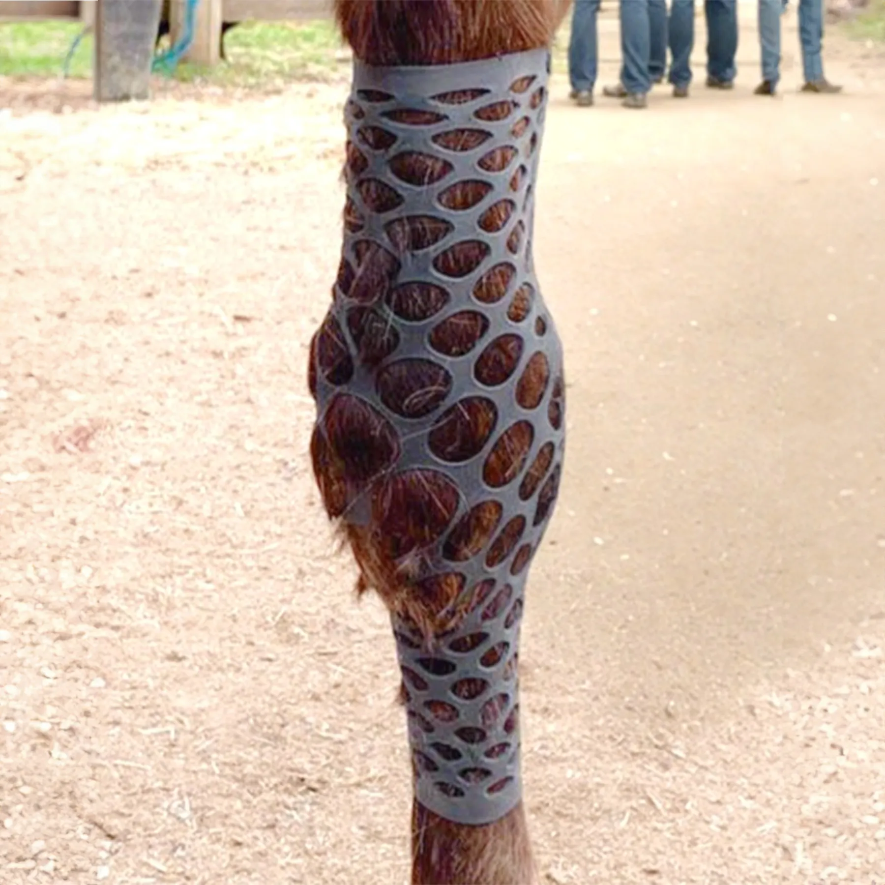 ”The equine sleeve product is a game changer! The elastic material stretches very easily, and holds the bandages up. The slotted sleeve allows for maximum airflow while holding a bandage tight to a wound. Gone are the days of hoping the wraps stay up! After you use them, just spray them off and you are ready for the next time. We recommend you put a couple of these in every vet box!”