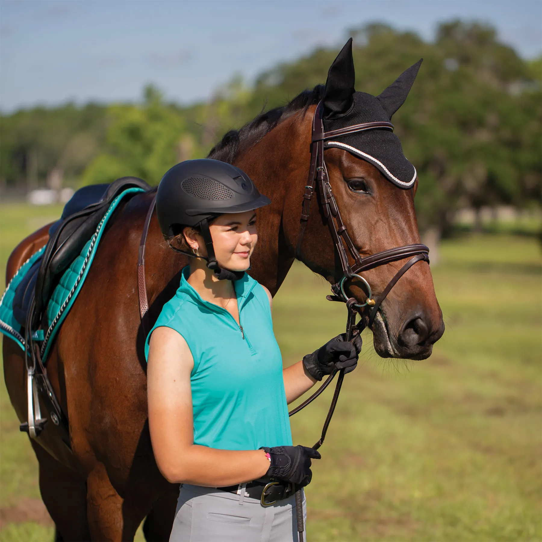 Stay cool, safe, and stylish in the saddle with the Equinavia Skylar Riding Helmet. Lightweight and sporty, this helmet is designed for schooling sessions and everyday rides. Air vents at the front and back ensure breathability, while the easy-adjust dial offers a secure, personalized fit. The breakaway peak enhances impact safety, and the ponytail cut-out adds extra comfort for riders with longer hair. Finished in an easy-care rubberized exterior and featuring a removable, washable Coolmax® liner, this helmet delivers both performance and practicality. ASTM F1163-23/ SEI certified for trusted protection.