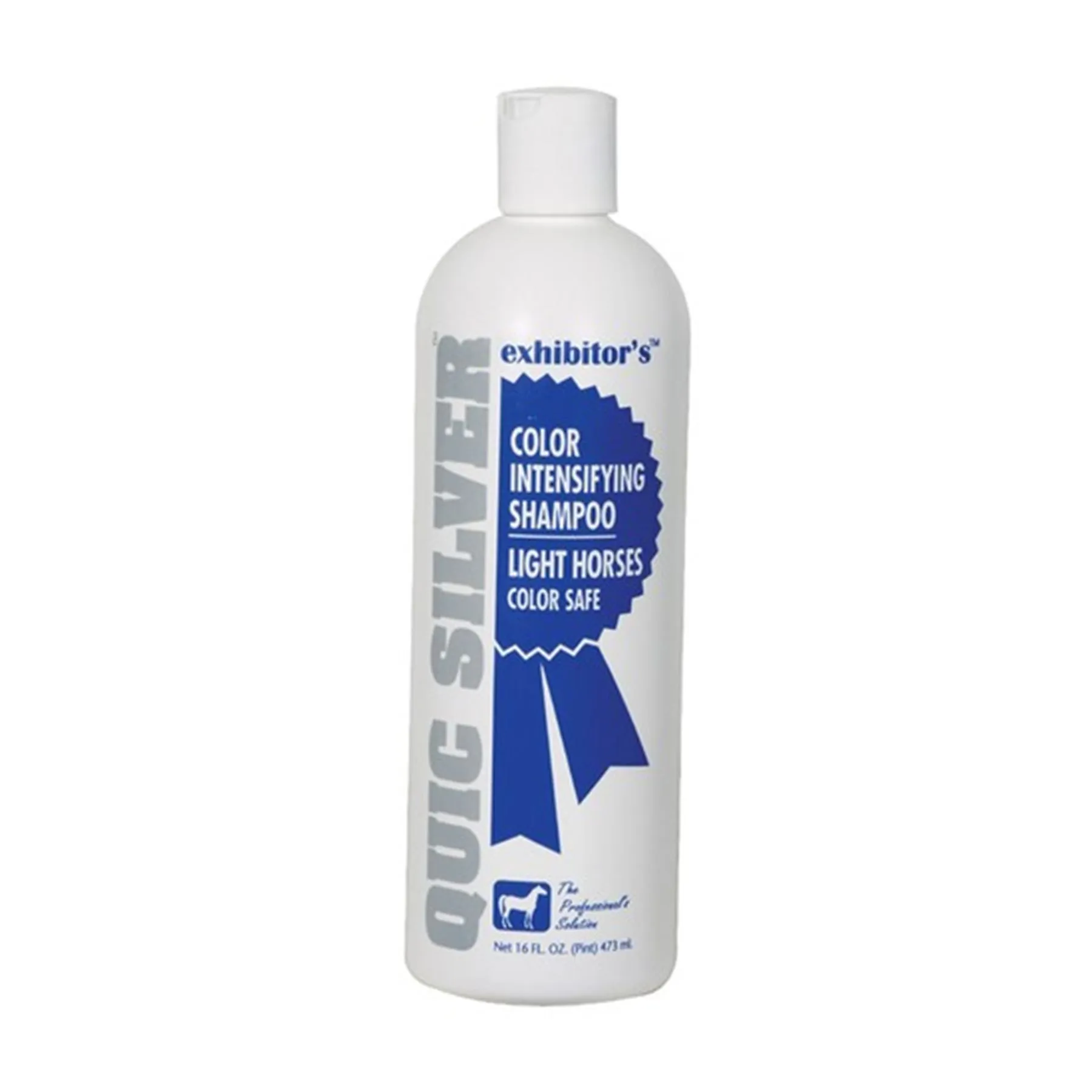 Quic Silver® intensifies the color of equine hair by optically altering the way light interacts with each hair shaft. No harsh chemicals or bleaches to leave hair full and dry. Quic Silver® naturally reveals in full intensity every color within the mane, tail, and coat, deep-cleaning to leave your horse soft, smooth and shiny. Quic Silver® is absolutely stunning on grays and albinos (silvery highlights), but will enhance color as well on some buckskins. Quic Silver® is an excellent stain remover, safely turning dingy markings a platinum white.