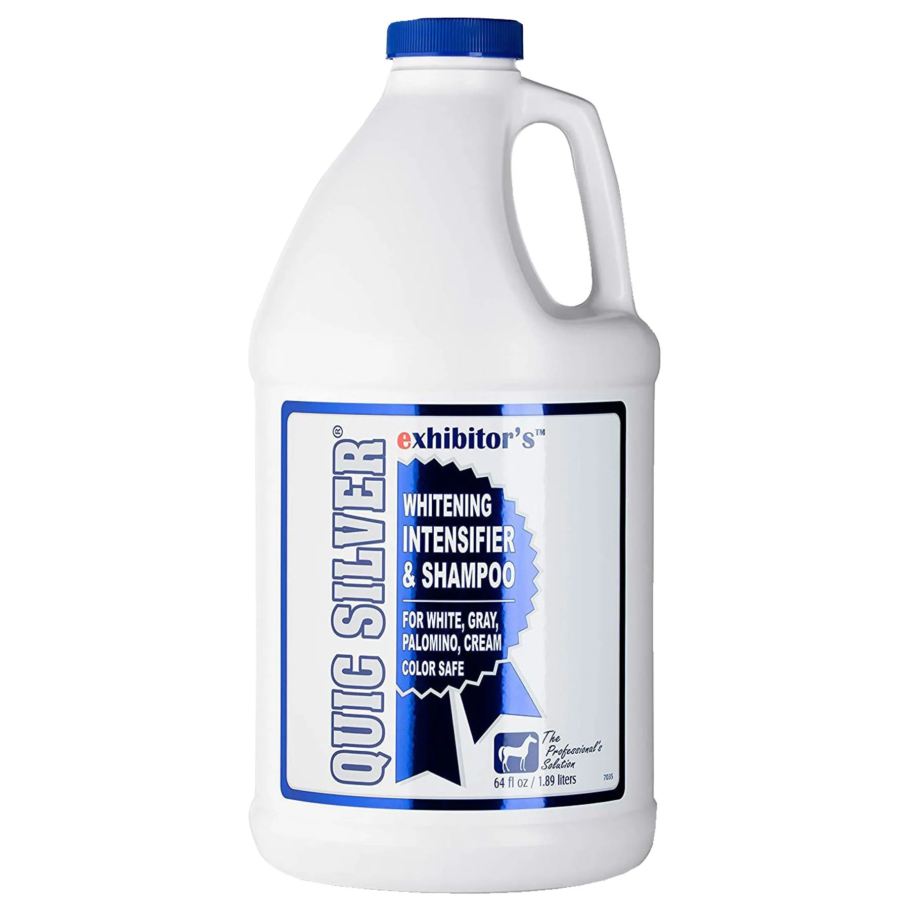 Quic Silver® intensifies the color of equine hair by optically altering the way light interacts with each hair shaft. No harsh chemicals or bleaches to leave hair full and dry. Quic Silver® naturally reveals in full intensity every color within the mane, tail, and coat, deep-cleaning to leave your horse soft, smooth and shiny. Quic Silver® is absolutely stunning on grays and albinos (silvery highlights), but will enhance color as well on some buckskins. Quic Silver® is an excellent stain remover, safely turning dingy markings a platinum white.