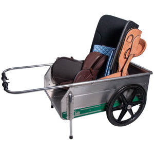 Say hello to the Fold-It Collapsible Stable Cart, your ultimate barn helper! This feather-light yet sturdy utility cart can tackle any challenge around the barn or show stable area. Crafted from marine-grade aluminum, it's built to haul up to a hefty 330 lbs. It sports two robust, 20" air-filled tires and a handy removable front gate for easy loading and unloading. Cleaning is a breeze, and when you're done, it folds up neatly, requiring no assembly and taking up less than 2 sq ft of storage space. Whether you're at horse shows or transporting feed buckets down the barn aisle, this cart is as versatile as it is reliable. Proudly made in the USA, this stable cart will make you wonder how you ever managed without it!