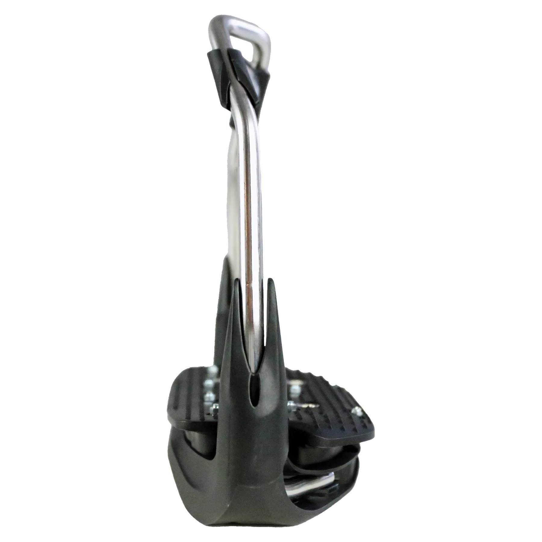 The AIR'S stirrup offers a traditional design with a stainless steel frame. Its technical features, such as Freejump Shock Absorption technology and the option to choose the eye orientation and tread inclination, ensure exceptional comfort and perfect stability. The floor of the AIR'S stirrup provides superior grip thanks to the super grip. The integration of fiberglass guarantees unparalleled longevity, and the removable steel studs enhance the anti-slip effect and ensure prolonged durability.