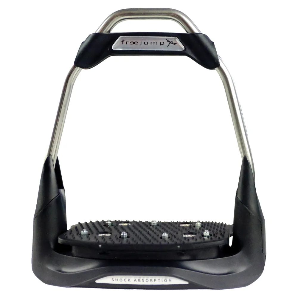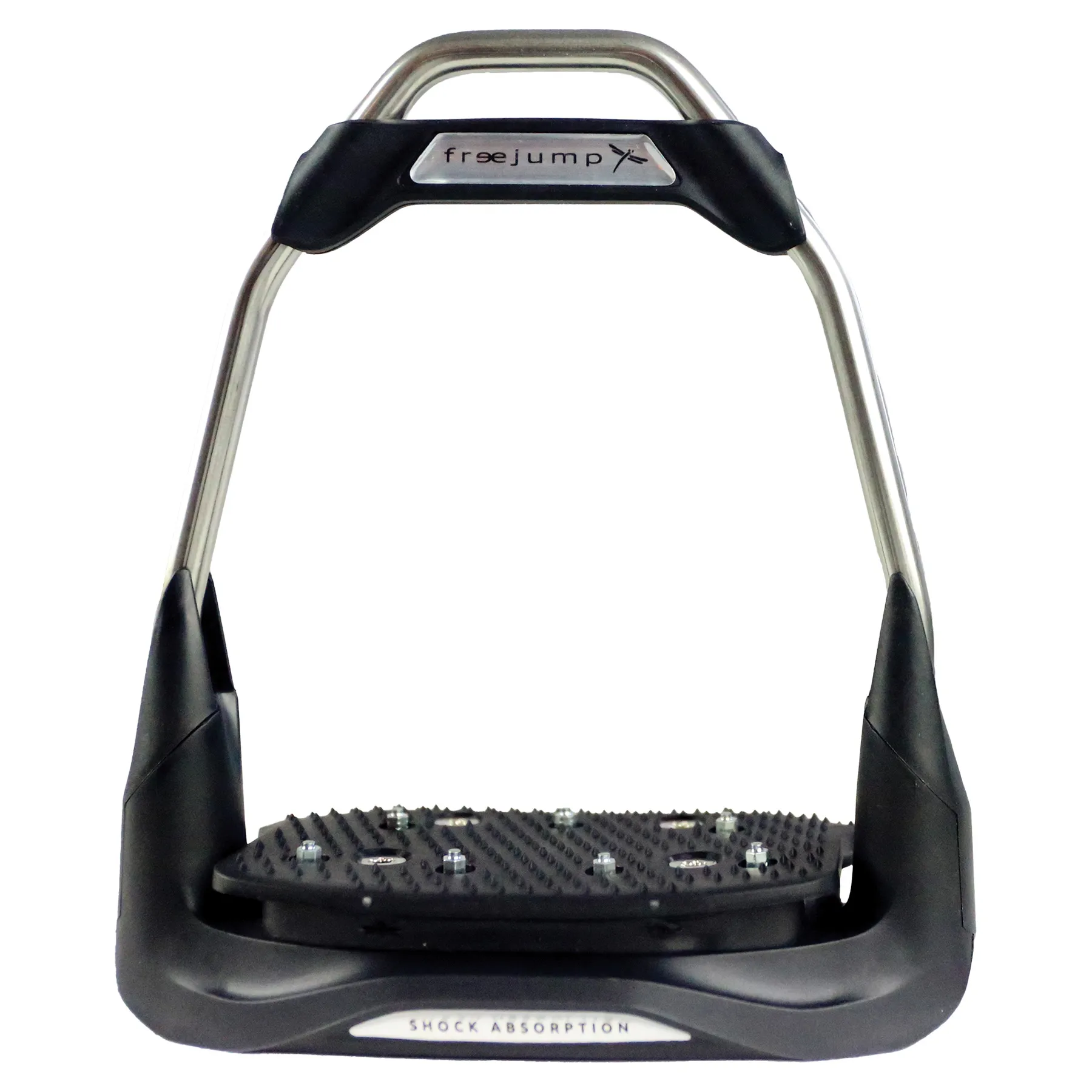 The AIR'S stirrup offers a traditional design with a stainless steel frame. Its technical features, such as Freejump Shock Absorption technology and the option to choose the eye orientation and tread inclination, ensure exceptional comfort and perfect stability. The floor of the AIR'S stirrup provides superior grip thanks to the super grip. The integration of fiberglass guarantees unparalleled longevity, and the removable steel studs enhance the anti-slip effect and ensure prolonged durability.
