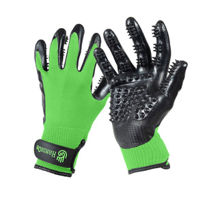 The HandsOn Gloves are a brillant idea - great way to thoroughly go over your horse and do a great massage and curry job at the same time. And they're great for removing saddle and bridle sweat marks. So much more effective and a lot more fun to use than regular curry combs - my horses and I love them!