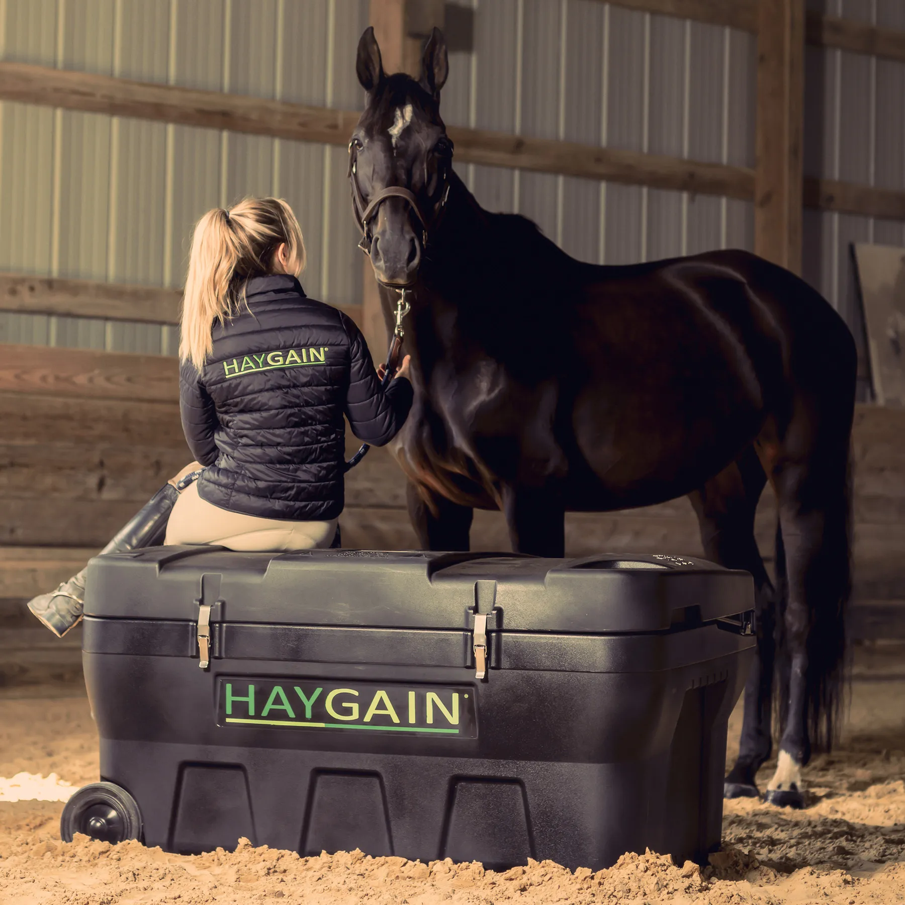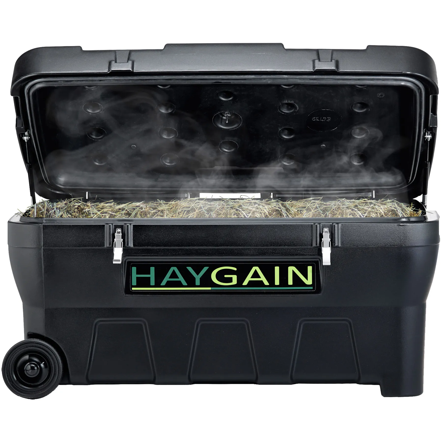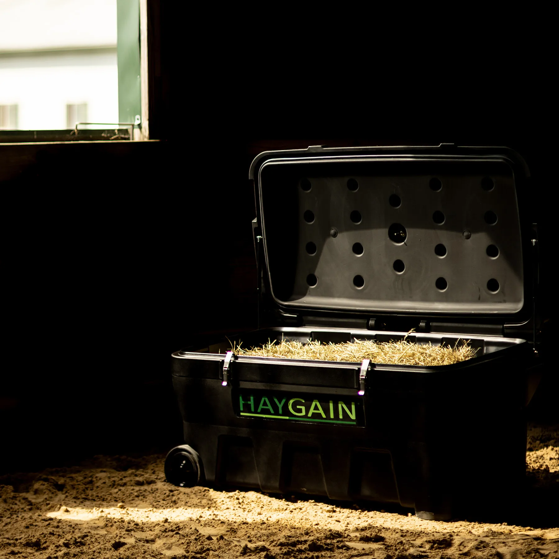 When it comes to horse health, clean forage is key and the Haygain 2000 Full Bale Steamer makes it easy. Designed for barns with multiple horses, this high-performance unit uses two steamers to deliver Haygain's patented high-temperature steaming. The result? Forage that's free of dust, mold, and bacteria, without sacrificing nutritional value. It's the only method scientifically proven to reduce respirable irritants in hay, and it's a favorite among horse owners who care about respiratory, digestive, and overall wellness. With room for a full bale and user-friendly features like wheels, a handle, and easy-open lid, it's a powerful upgrade for your feeding routine