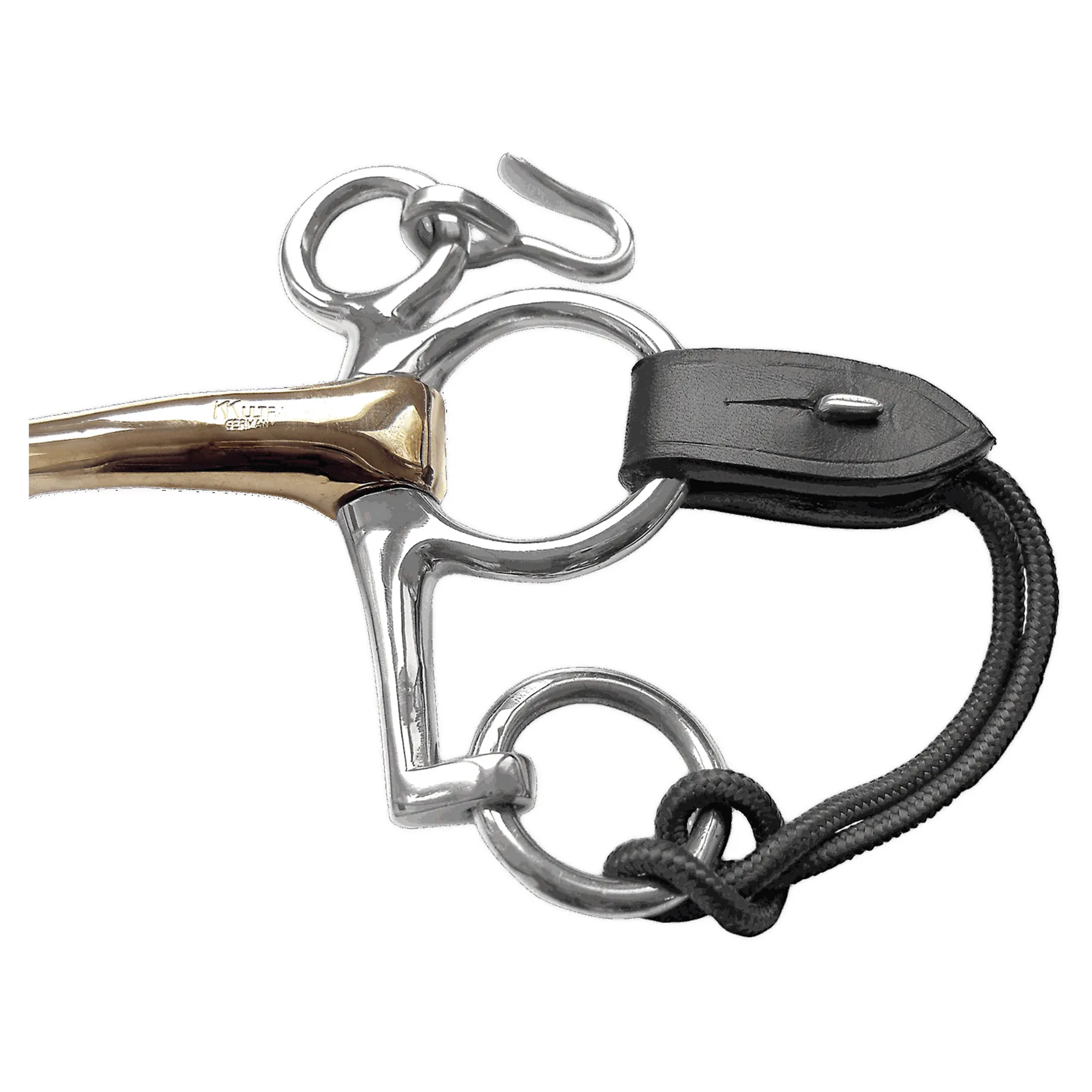 Make your ride more streamlined with these Herm Sprenger® Pelham Bit Converters, designed for riders who want the benefits of a Pelham bit with the convenience of a single rein. Combining rugged durability with elegant design, these converters feature nautical-grade nylon rope for strength and high-quality leather for a professional finish. The rope loops securely through the lower ring, while the leather tab attaches easily to the upper ring with a stainless steel hook stud closure, practical, polished, and HS® logo-embossed for a subtle touch of class.