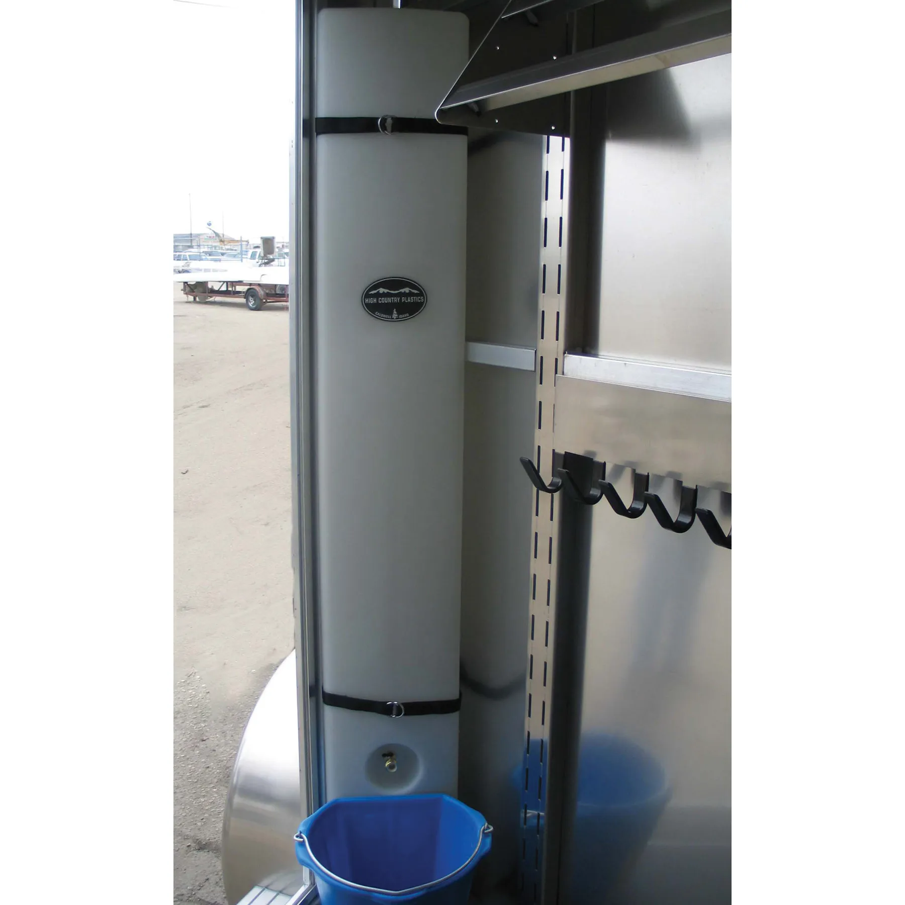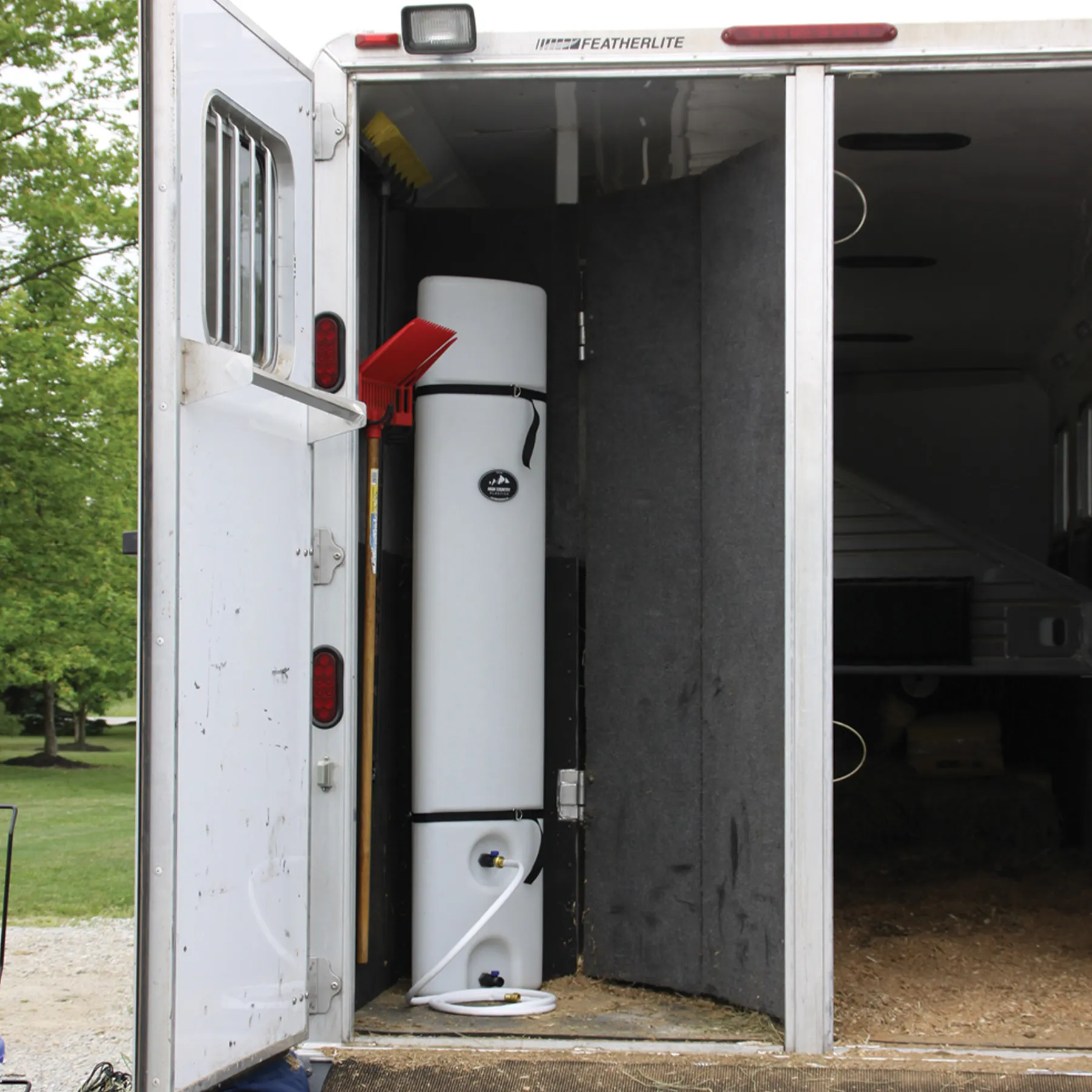 These upright water caddies for slant load trailers are the ultimate solution for keeping your horses hydrated while on the road. This is the ultimate water system for trailers; making it a must-have for every horseman. Choose between an 18-gallon or 39-gallon option, both designed to fit securely in the corners of your walk-in tack room.