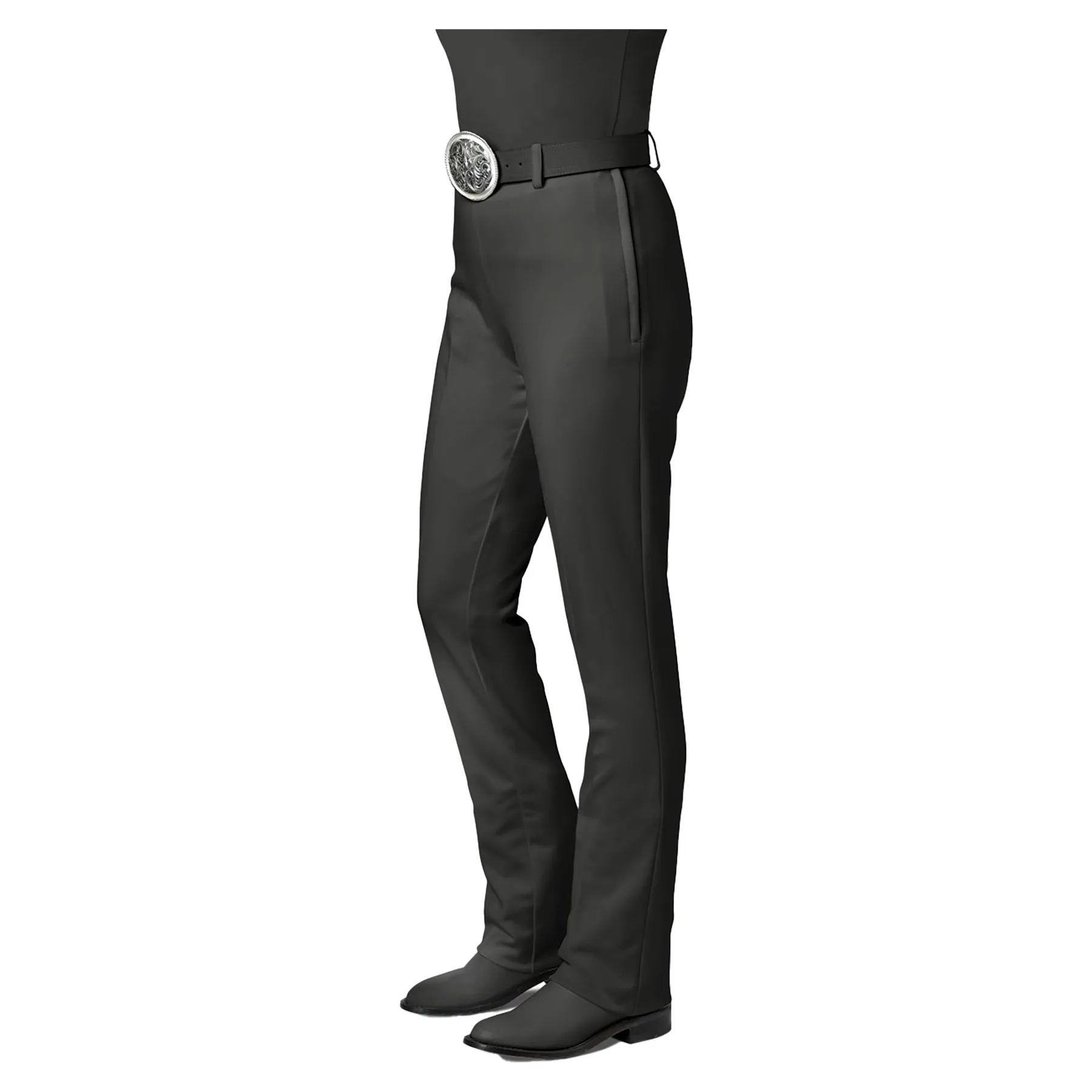 These western show pants for girls are made from a hi-tech fabric in a classic design so you can be comfortable in the show ring. The knit fabric is firm yet stretchy for a flattering fit and fantastic comfort. It is exceptionally breathable, and transfers heat from your body as you ride. With an elasticized back waistband and side zipper, these will fit your young rider well.