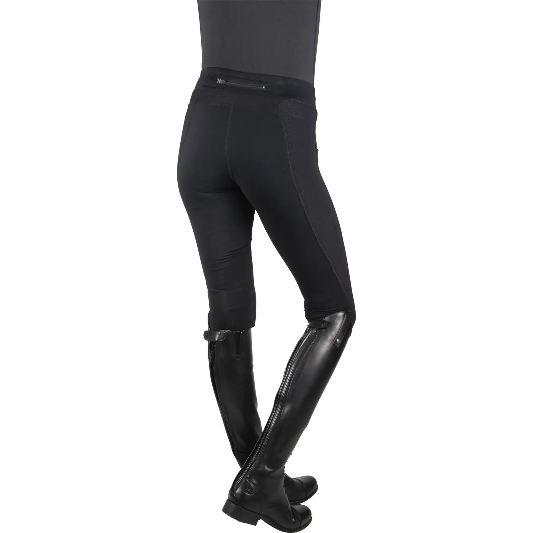 - Comfortable jacquard mesh calf panels lessen bulk under boots or half chaps