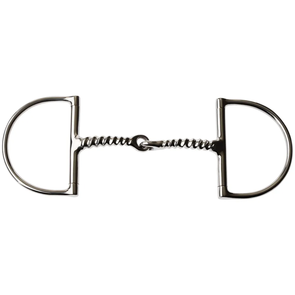 This D-ring snaffle bit features a corkscrew mouthpiece that creates more pressure points on the bars, making it a stronger option. It's curved to reduce the "nutcracker" action and to alleviate pressure on the tongue and bars of the mouth. It allows for effective communication between horse and rider whilst encouraging relaxation and salivation. Dee ring compromises between an eggbutt and a full-cheek snaffle, preventing pinching at the corners of the mouth and without the dangers posed by the arms of a full-cheek snaffle.