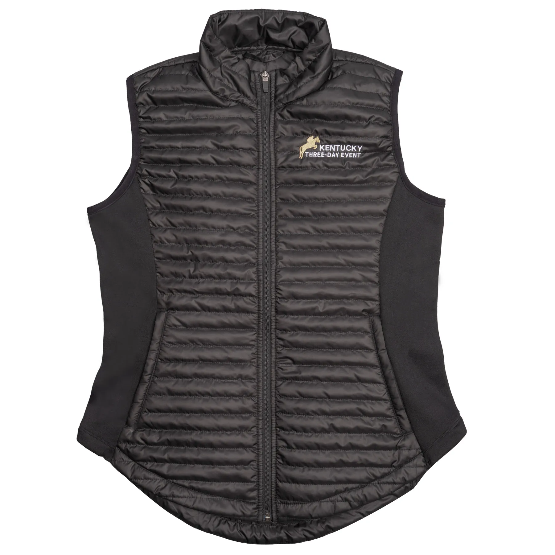 Stay warm, stylish, and free to move with the K3DE 2025 Ladies Quilted Puffy Vest - a lightweight, insulated layer designed for active equestrians. Featuring a puffy quilted front and back for core warmth, stretch side panels for a flattering fit, and a tapered hemline for extra coverage, this vest blends function with fashion for any cool-weather adventure.
