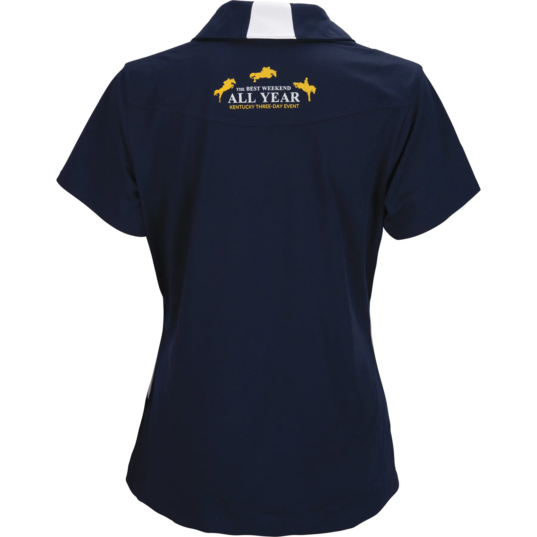 The K3DE Best Weekend All Year Ladies Sport Polo is designed for performance and style, making it the perfect choice for equestrians and event fans alike. Crafted from smooth, snag-resistant micro pique fabric, this polo wicks away moisture to keep you cool and comfortable all day. Thoughtful details like color blocking, a self-fabric Johnny collar, and a tag-free label create a polished yet sporty look. Featuring the Best Weekend All Year Kentucky Three-Day Event logo on the back, it's the ultimate souvenir from an unforgettable event.