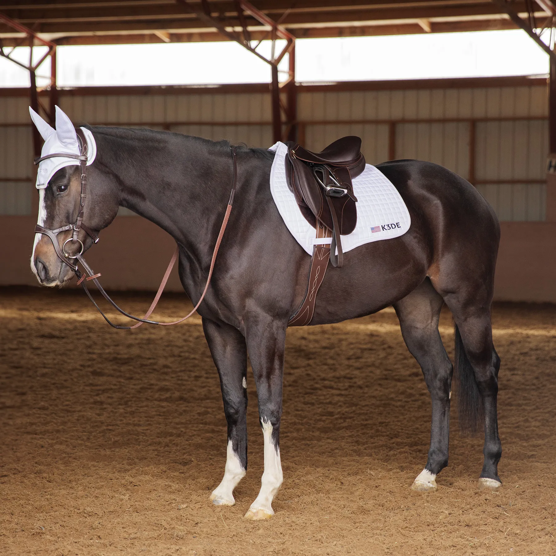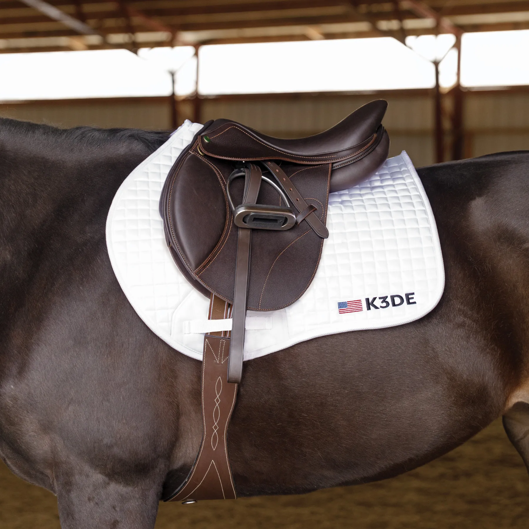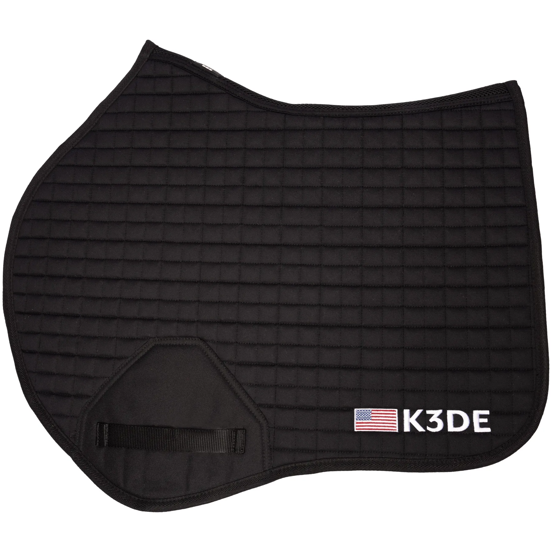 Ride in comfort AND style with the K3DE Close Contact Jump Pad, designed for optimal fit, breathability, and durability. This contoured pad features a self-lifting wither relief design, a bamboo wicking underside to keep your horse cool, and 8mm of cushioning for superior comfort. With a fitted jump saddle shape, it's perfect for both schooling and showing, and the K3DE logo adds an official event touch.