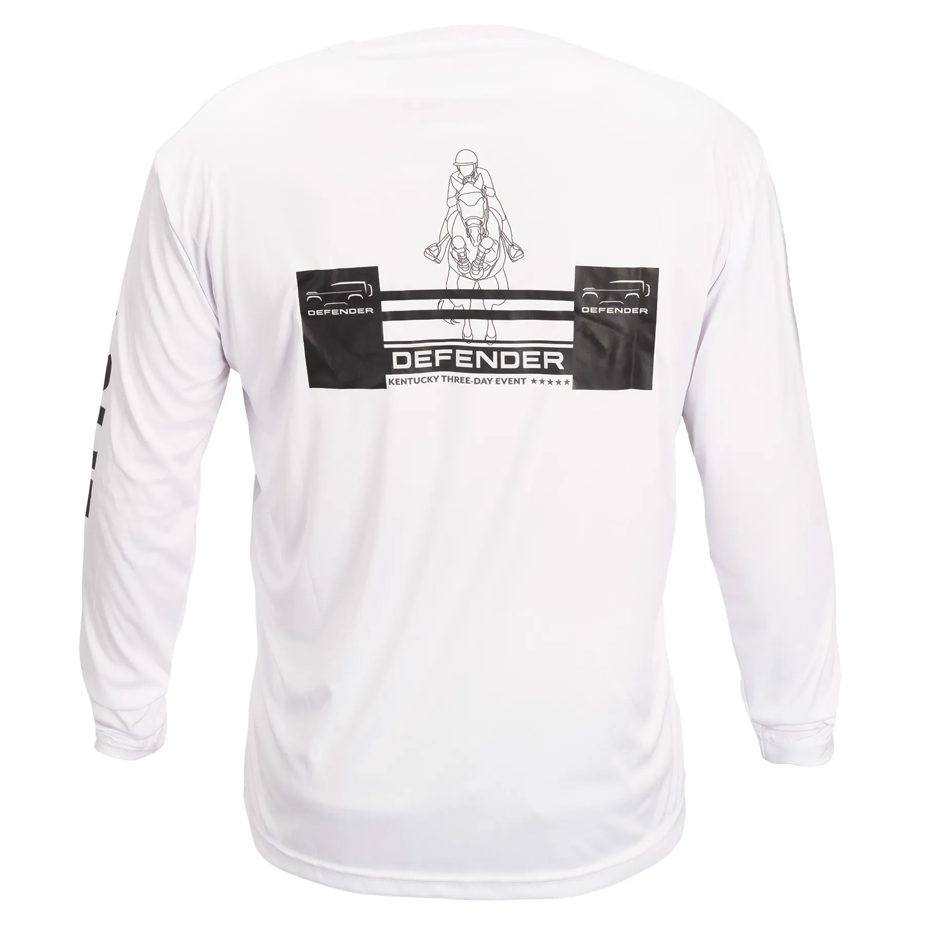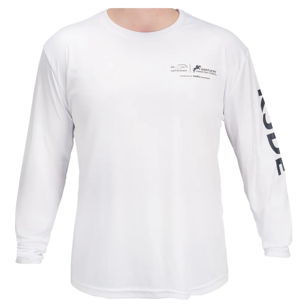 Stay cool, comfortable, and protected in the K3DE Defender Jump Unisex Long Sleeve Performance Shirt! Made from lightweight, moisture-wicking fabric, this shirt is designed to keep you dry and comfortable whether you're training, competing, or just enjoying a day at the barn. With a unisex fit that flatters all riders and long sleeves for added sun protection, it's the perfect blend of functionality and style. This performance shirt features official K3DE, Defender, and Mars logos.