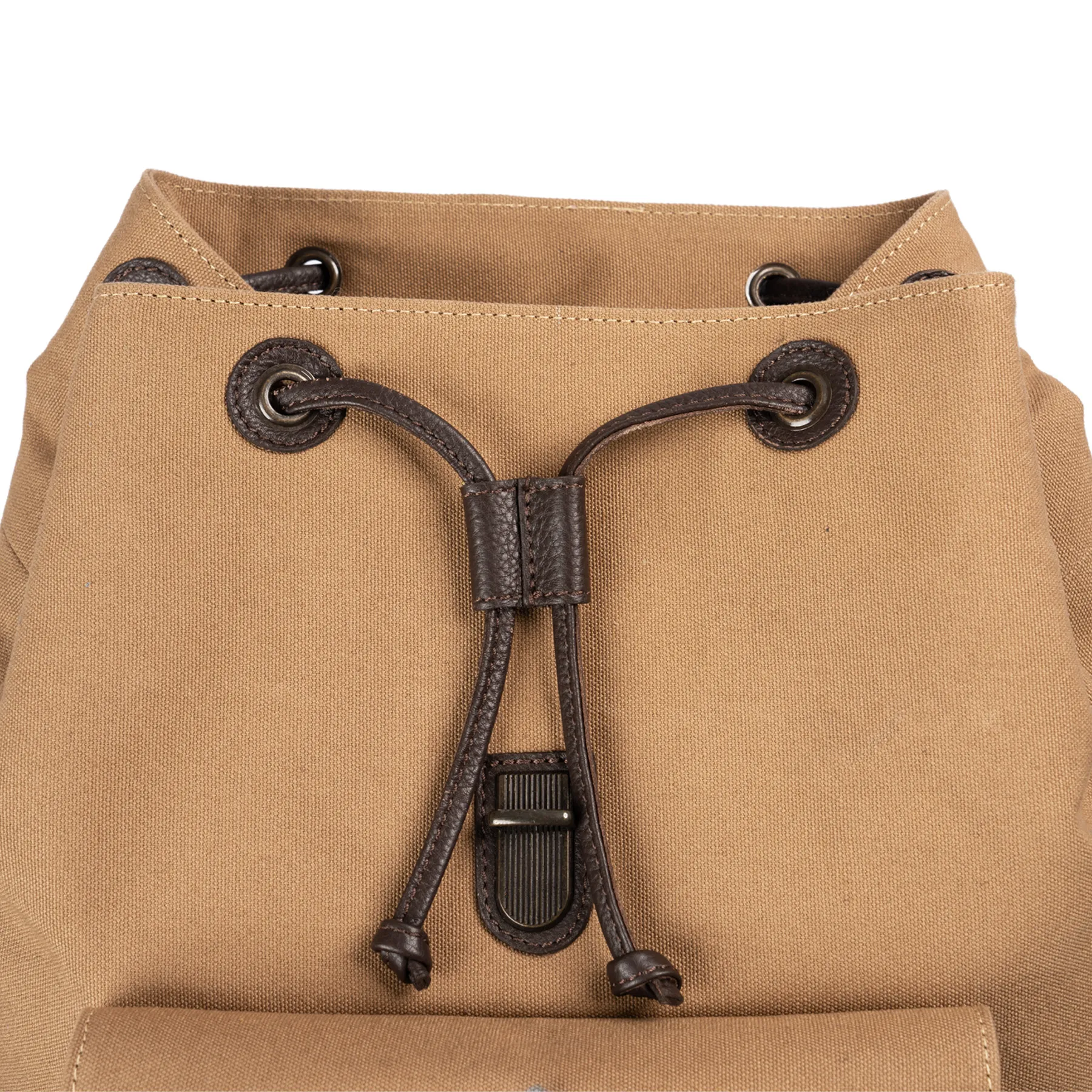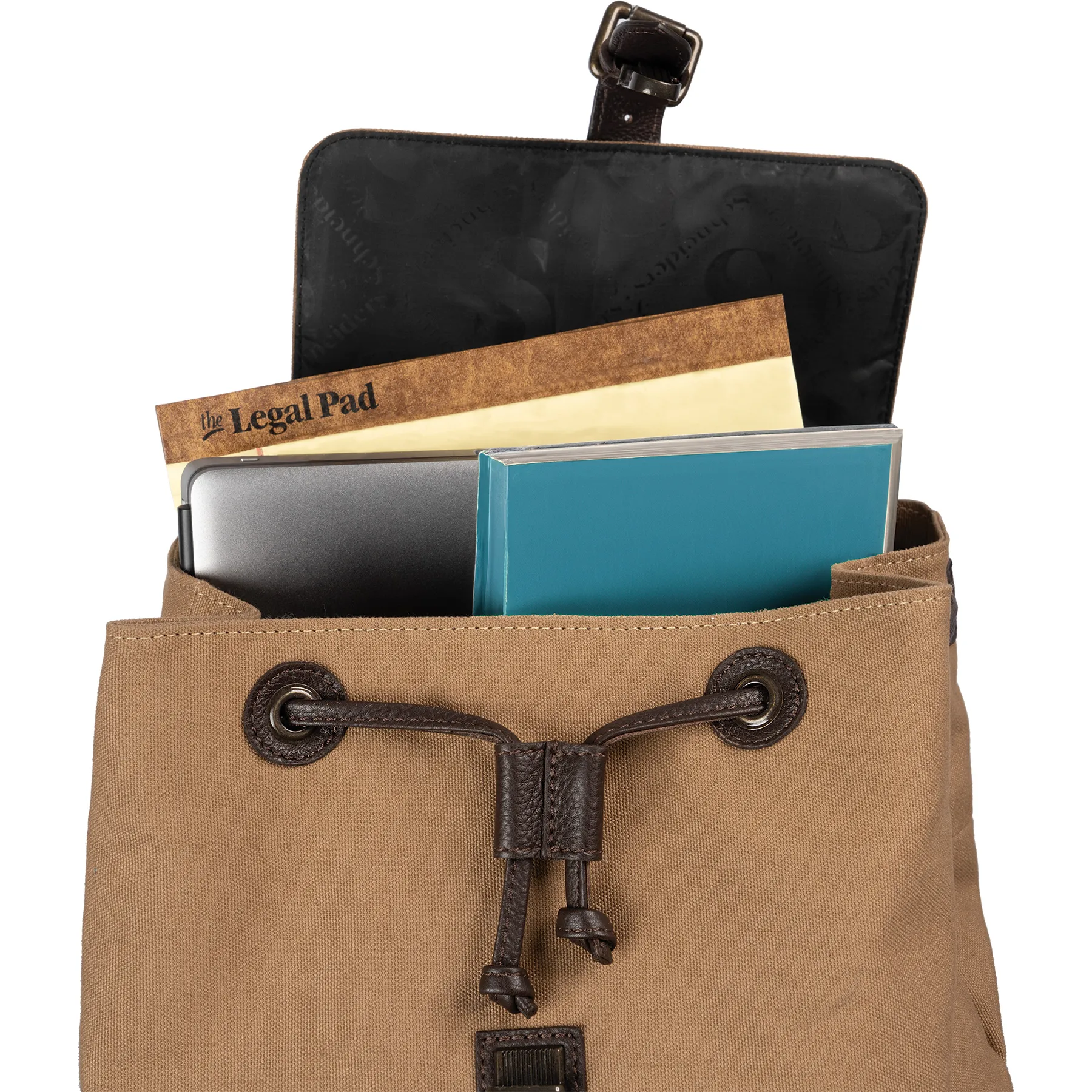 - Drawstring top closure with a quick-clip cover for secure storage