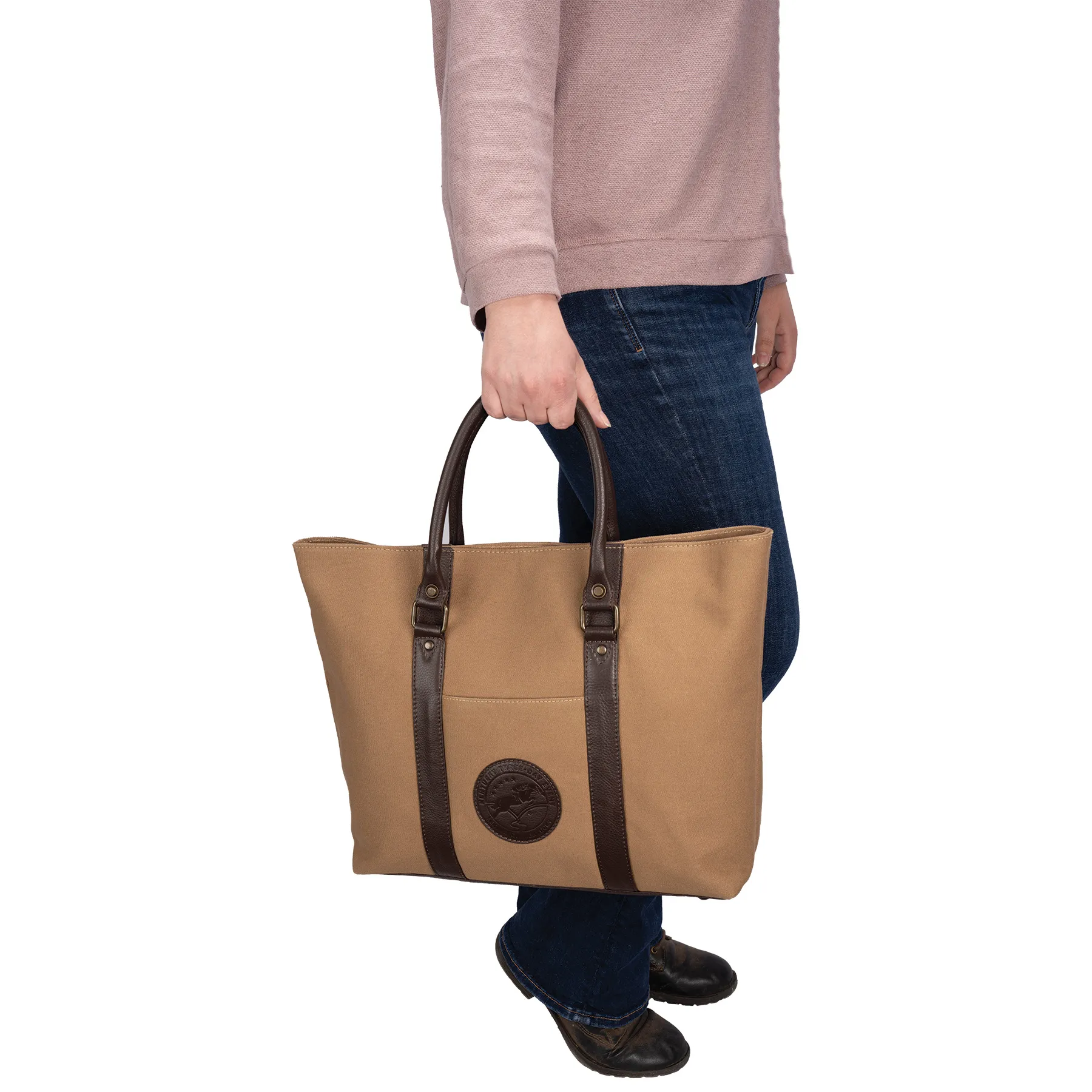 - Heavy 14oz canvas with rich brown leather for a timeless look