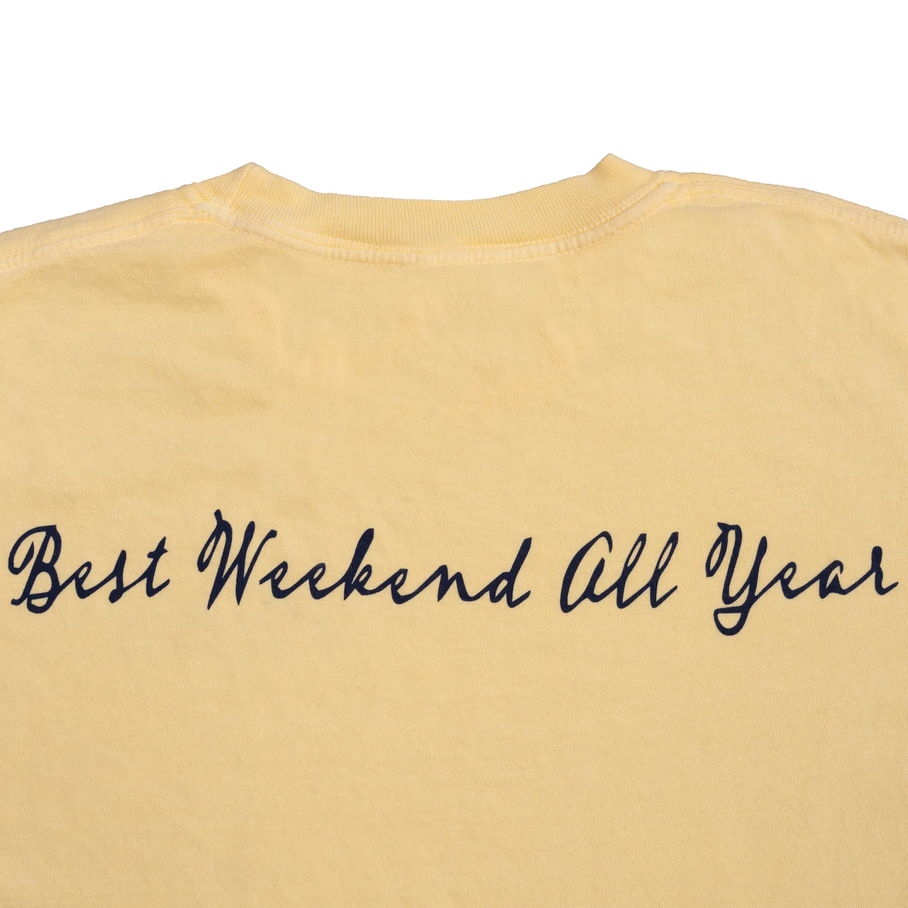- Stylish script design on the back declaring "Best Weekend All Year"