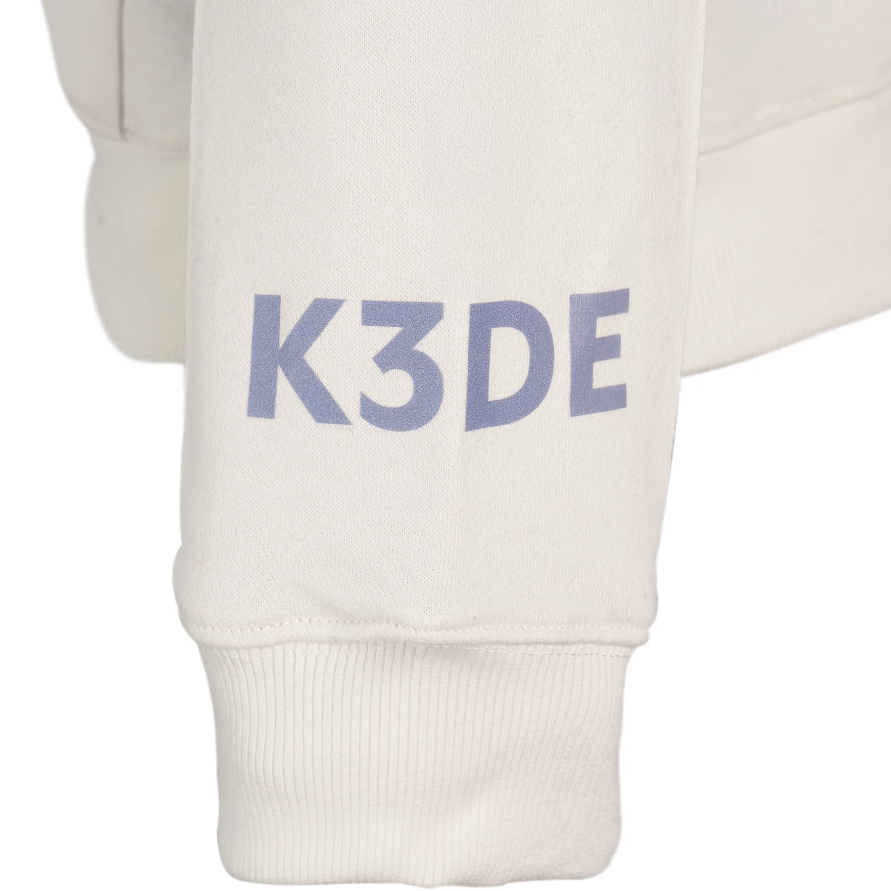 - K3DE text logo across the chest, left wrist, and box logo on the backside