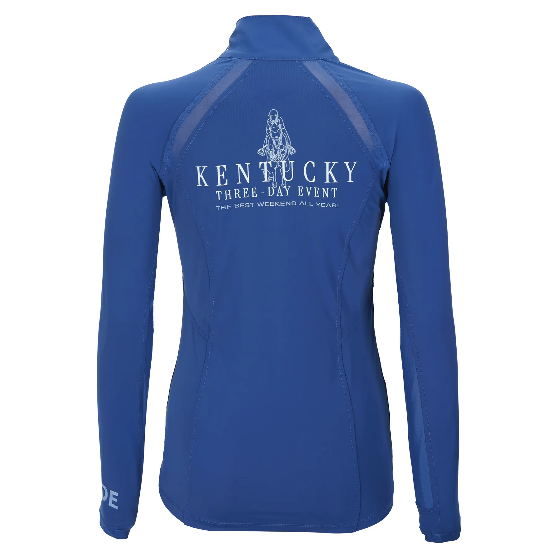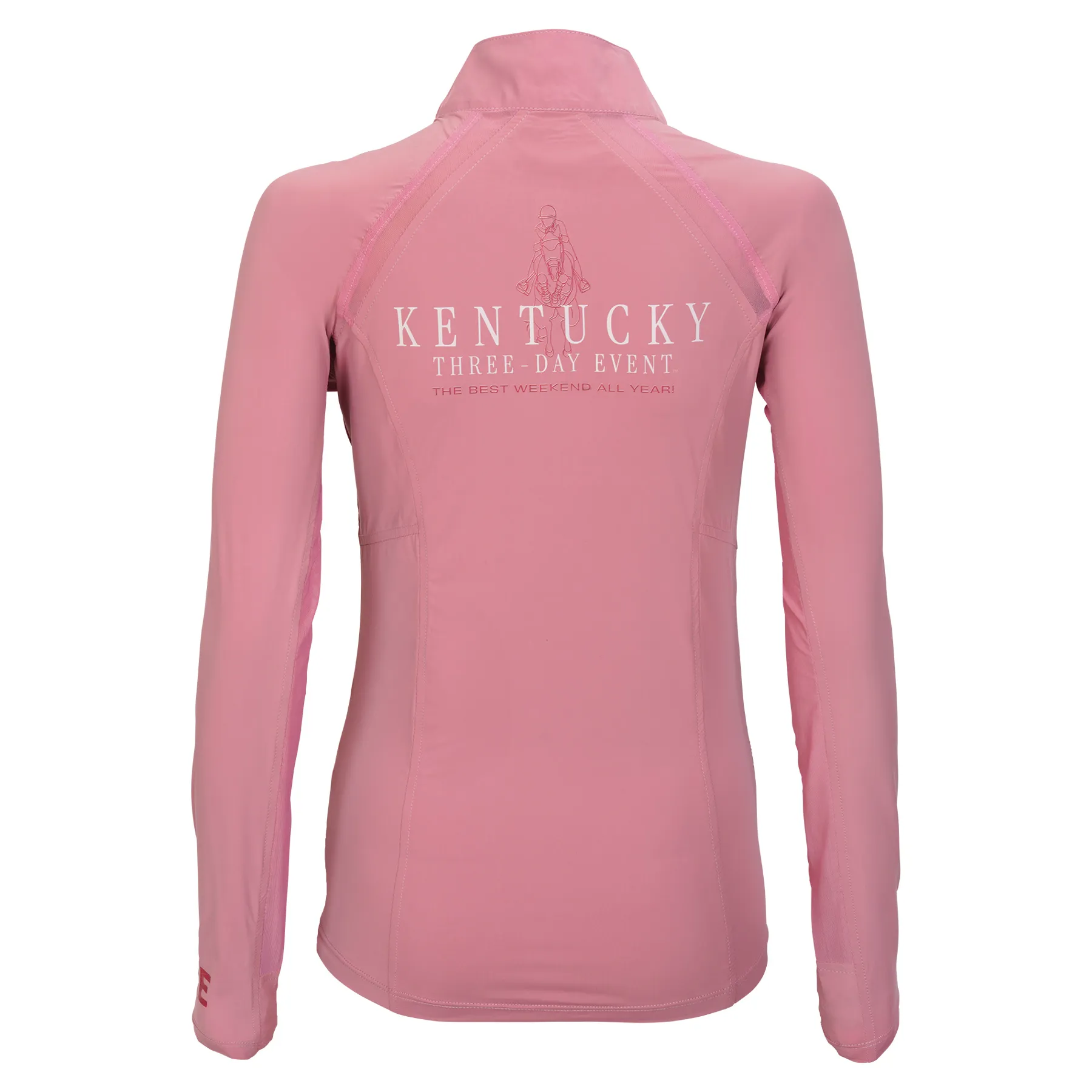 Stay cool, covered, and confidently polished in this long-sleeve 1/4 zip sun shirt designed officially for the Kentucky Three-Day Event. Built with UPF 50 sun protection and breathable mesh paneling, it keeps you protected during long days in the saddle while the lightweight, moisture-wicking fabric works overtime to keep you dry. The athletic, fitted silhouette offers a flattering look that performs just as beautifully as it feels.