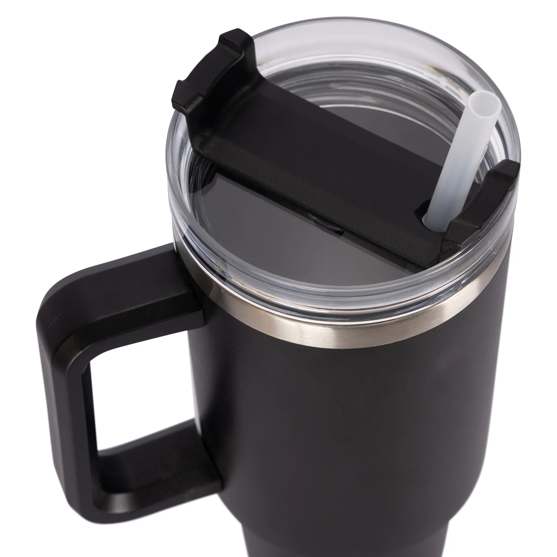 - Screw on straw lid with seal and twist closure