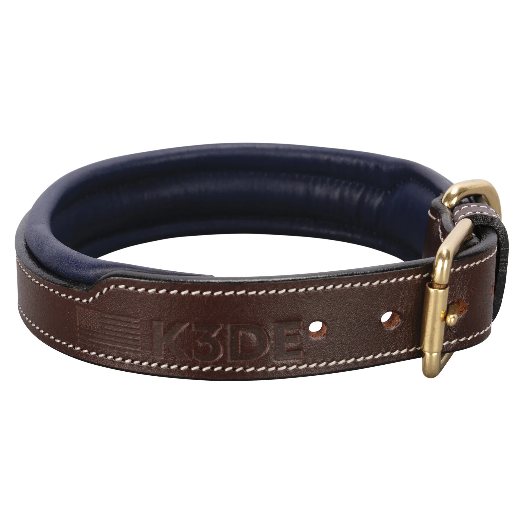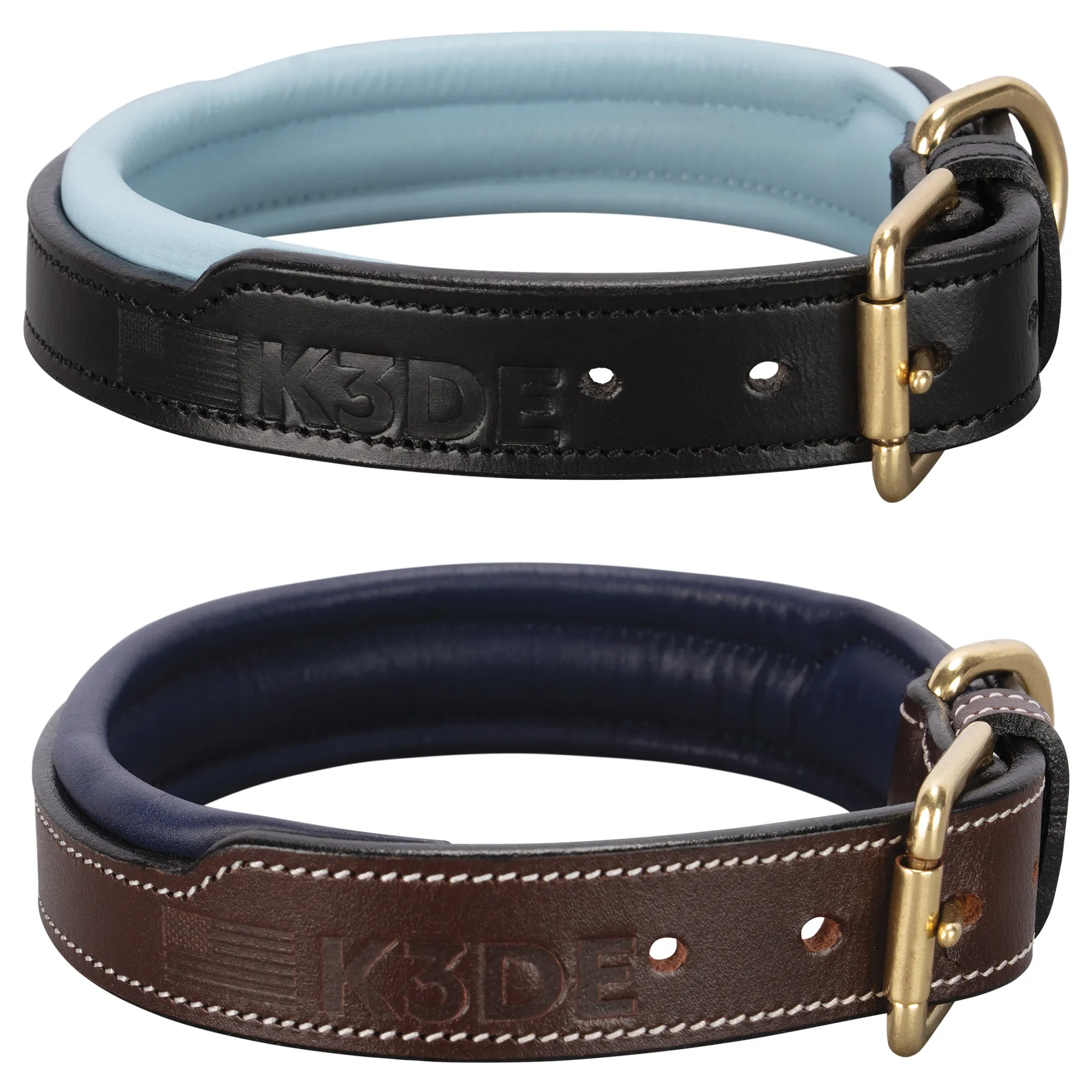 Give your pup a touch of equestrian elegance with the K3DE Padded Leather Dog Collar. This limited-edition design is crafted from high-quality leather with soft padding for all-day comfort. Featuring brass-plated hardware and a secure D-ring for leash attachment, it's as durable as it is stylish. Available in multiple sizes to ensure the perfect fit, this 1" wide collar pairs beautifully with the matching leather leash for a coordinated look.