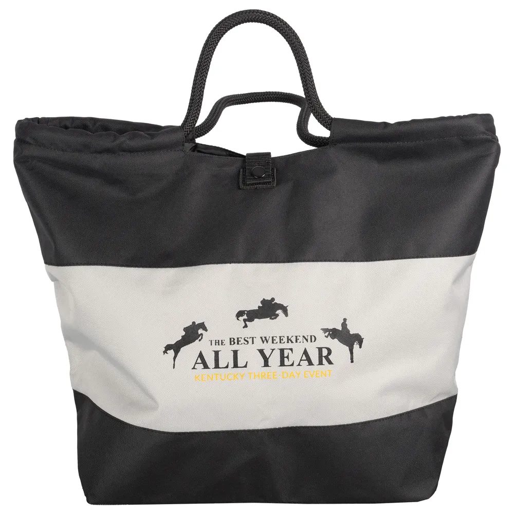 Celebrate the Kentucky Three-Day Event with the Limited Edition K3DE Horseman's Tote - a versatile and stylish carry-all for the barn, horse shows, or everyday errands. Featuring soft rope handles, a durable 600D poly outer, and a roomy interior, this tote is perfect for carrying riding gear, horse wraps, or even groceries. With an inside pocket for extra organization and the option for personalization, it also makes a great gift or award!