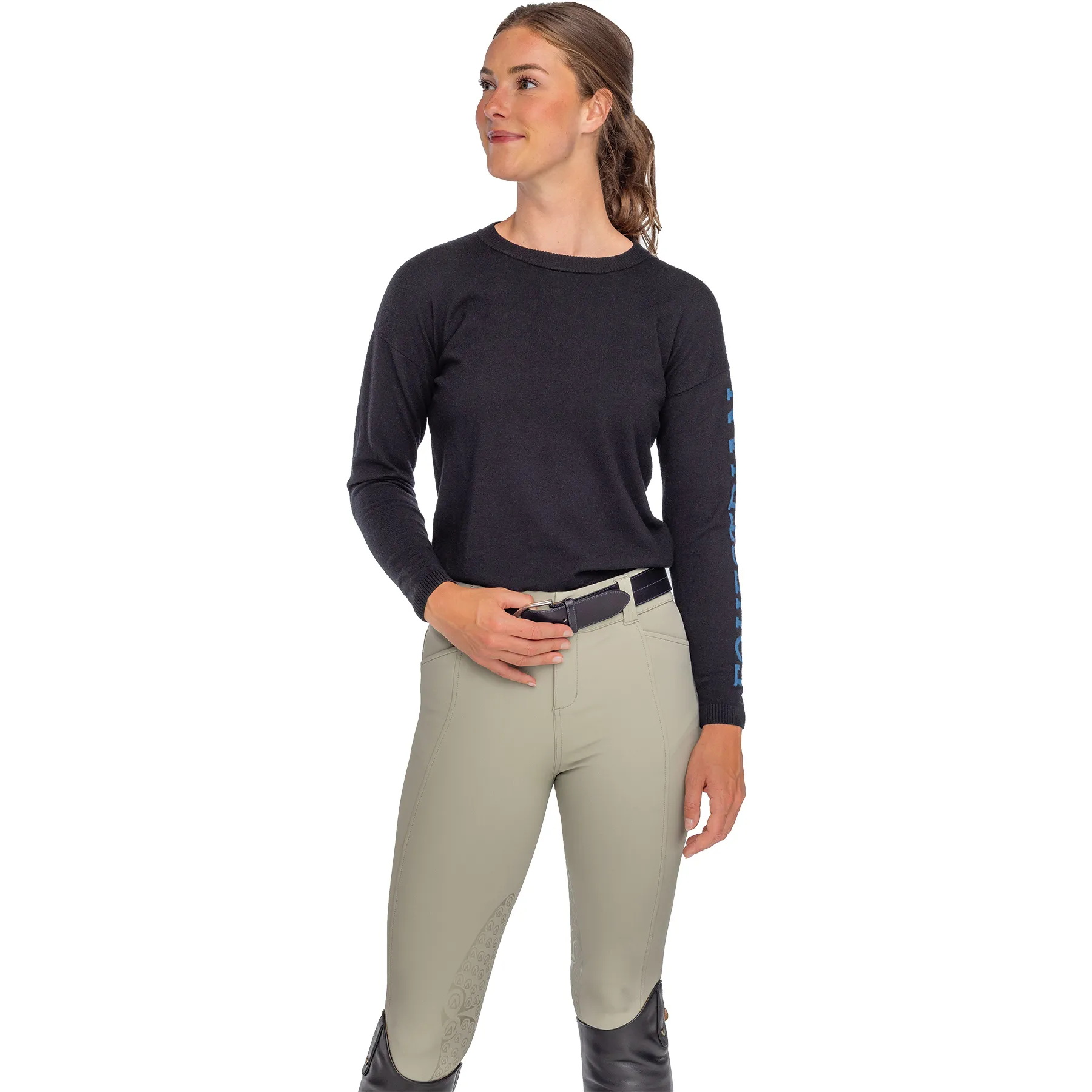 - "Equestrian" text detail down the left sleeve