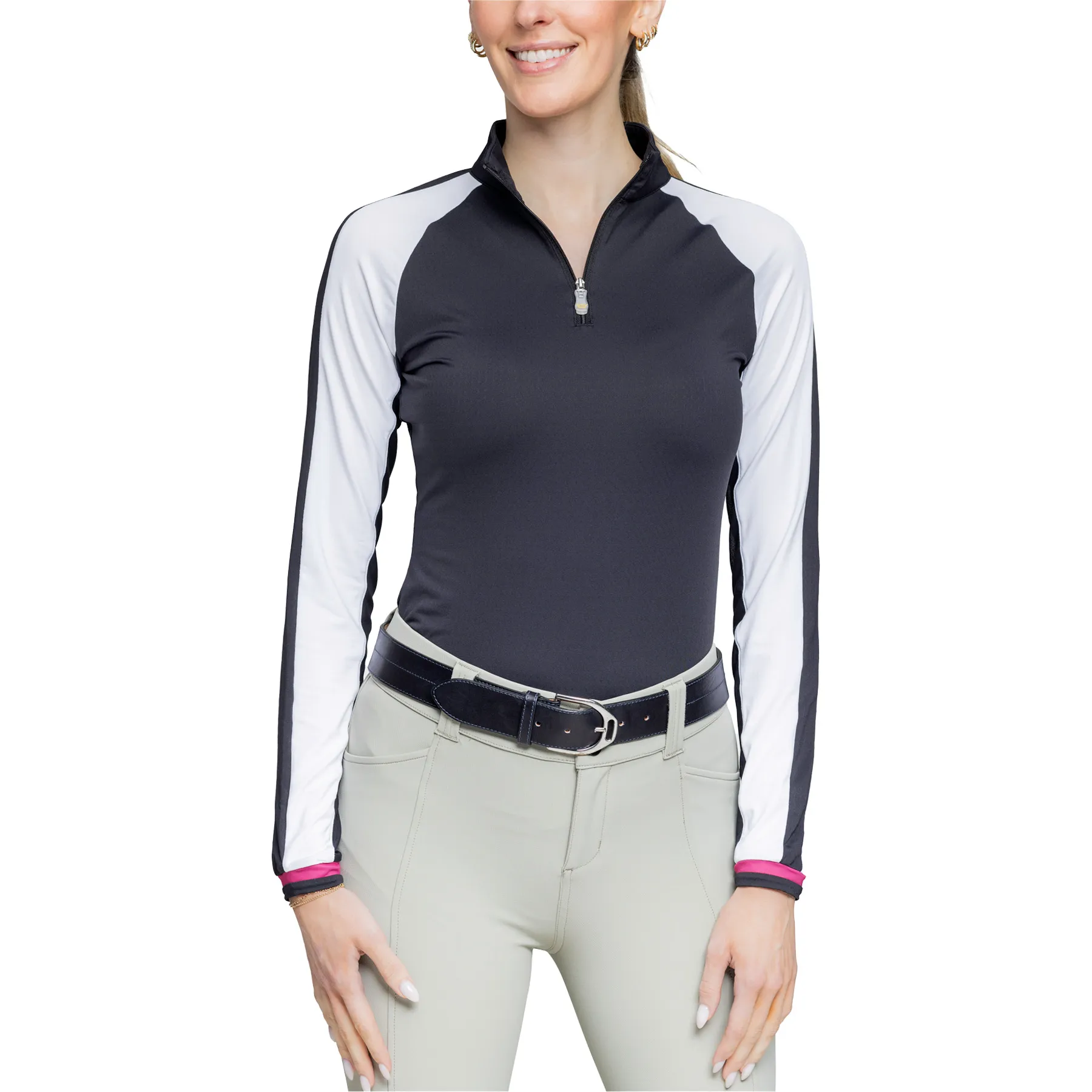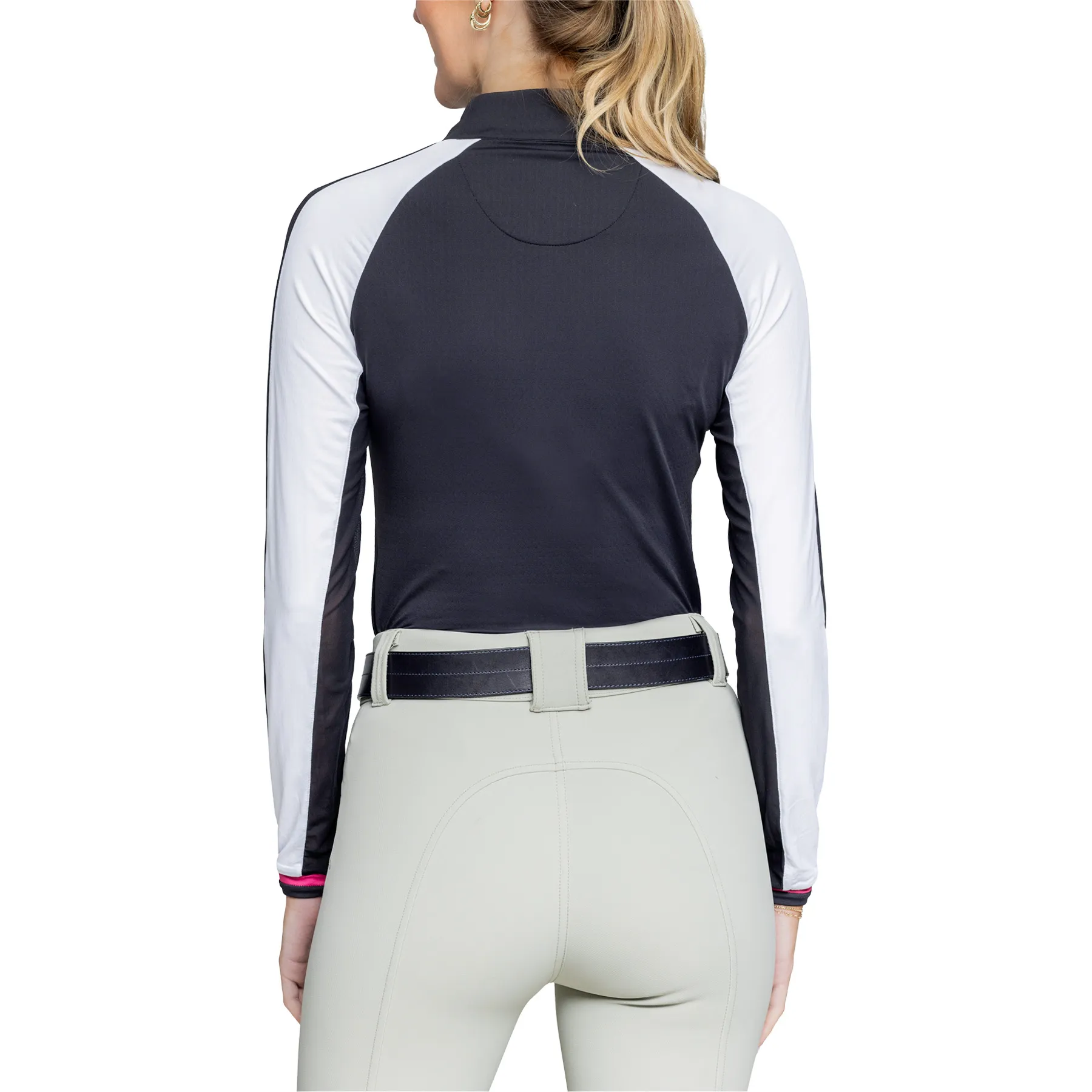 Stay stylish and sporty with the Kastel Denmark Ladies Colorblock 1/4 Zip Long Sleeve Sun Shirt. Designed with sleek black and white color blocking and bold fuchsia cuff stripes, this contemporary-fit sun shirt is the perfect base layer for all your active pursuits. Featuring UPF 30+ sun protection, breathable power mesh sleeves, and soft four-way stretch fabric, it keeps you cool, comfortable, and protected whether you're in the saddle or on the go.