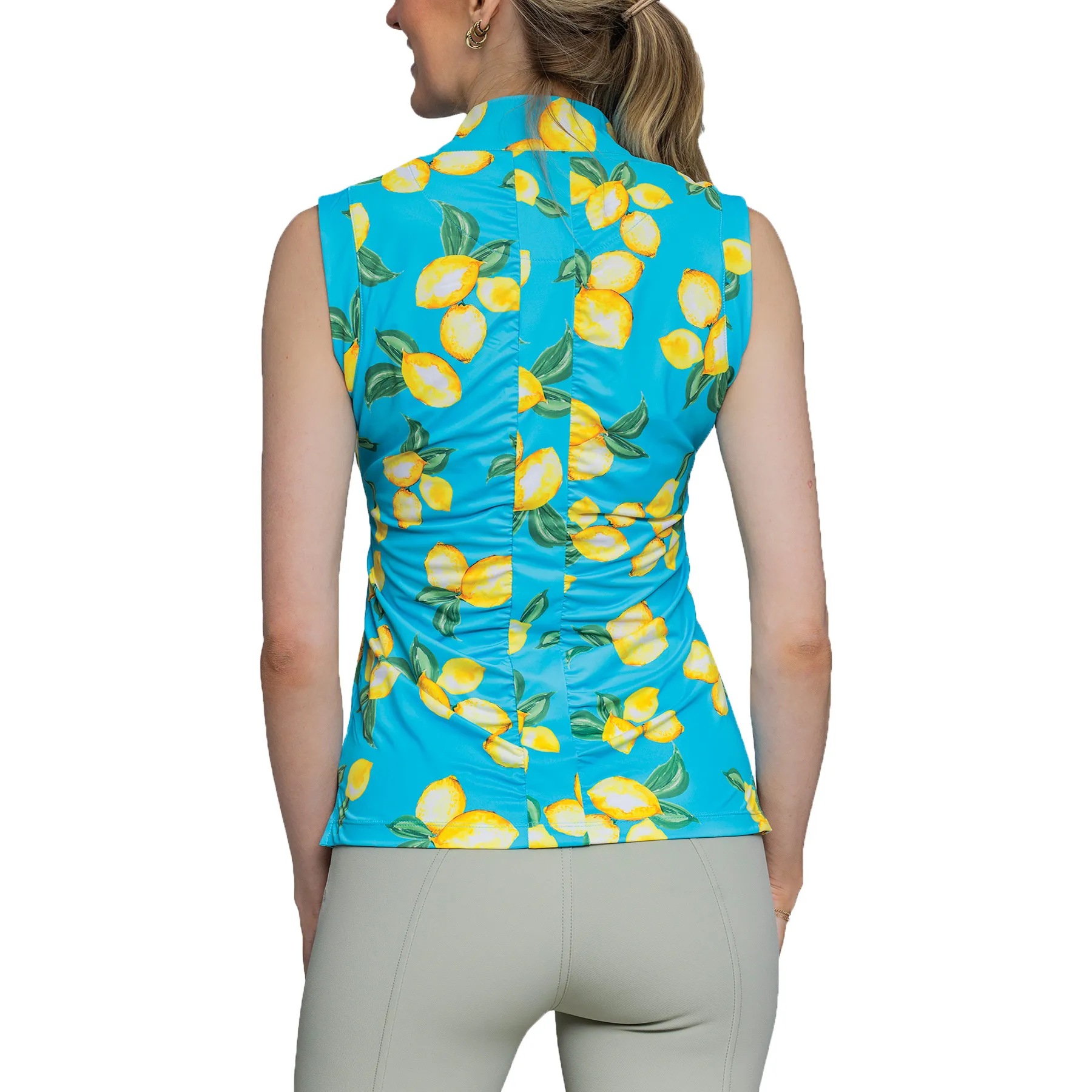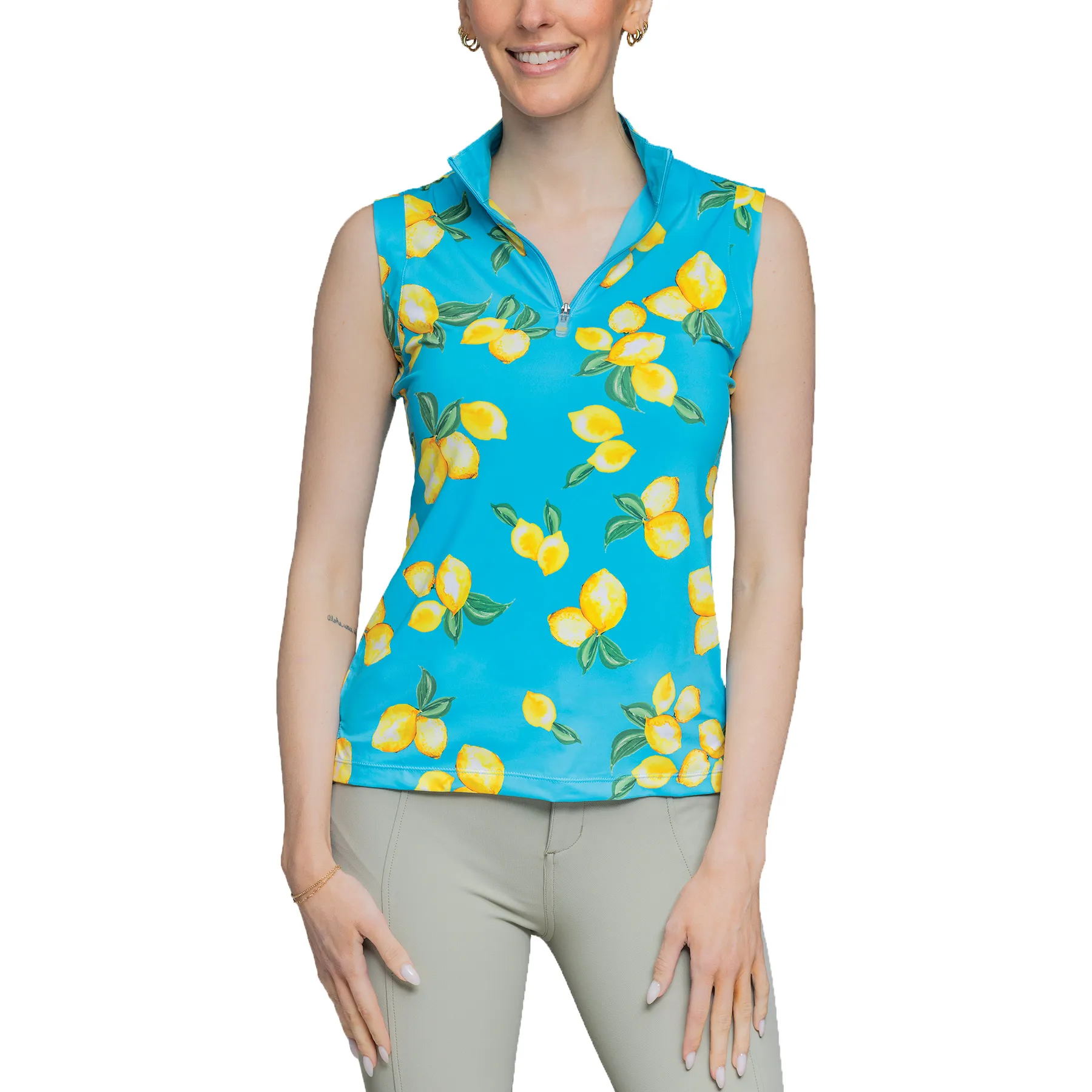 The Kastel Denmark Ladies Ruched Back 1/4 Zip Sleeveless Shirt is the perfect mix of style and function. Featuring a azure blue and painterly lemons whimsical print, this bra-friendly tank delivers cool comfort, flattering fit, and reliable sun protection for every warm-weather ride.