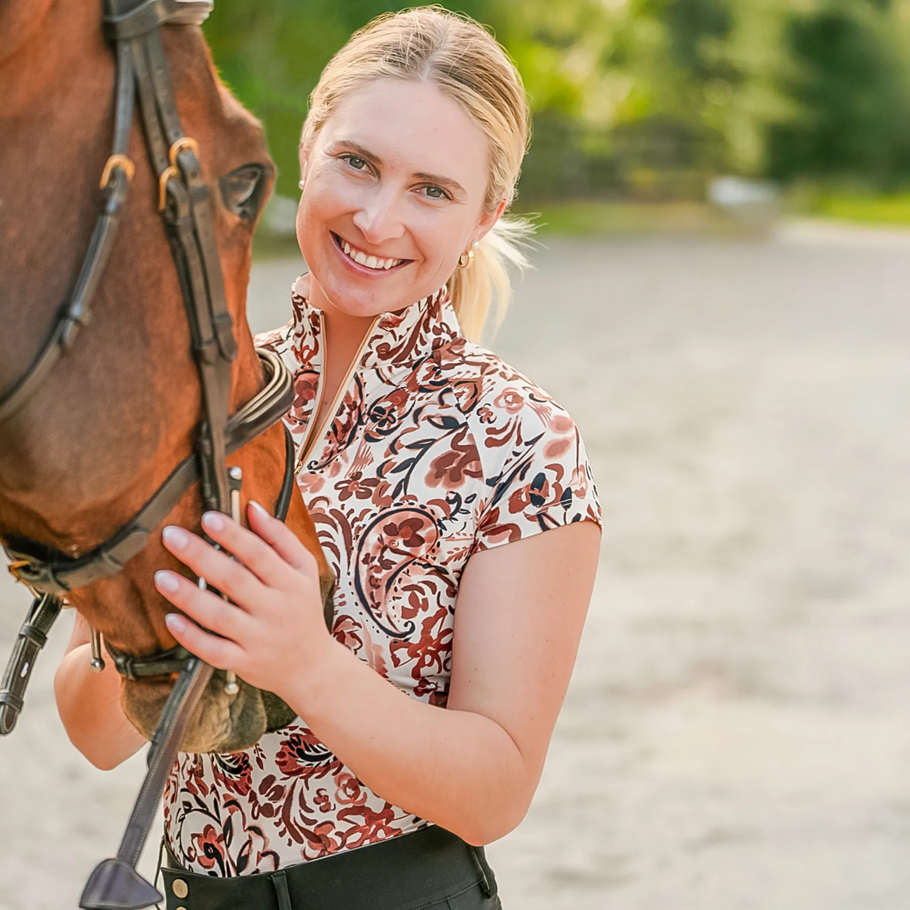 A little boho, a lot of performance, this cap sleeve top is ready for sunny rides, relaxed rounds of golf, or brunch in town. The Kastel Denmark Ladies Sienna Ikat Quarter Zip Cap Sleeve Top blends rich earthy tones with soft, stretchy comfort. With UPF 30 sun protection and a rose gold quarter zip, this is your new go-to for effortless style and sporty function.