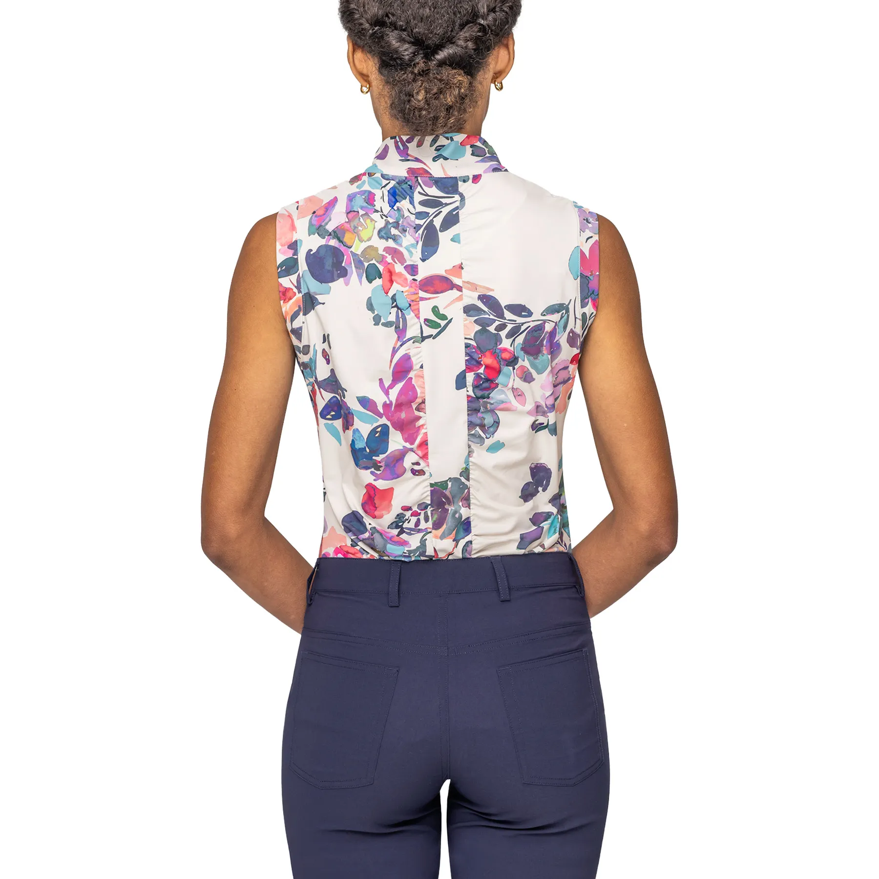 Kastel Denmark Ladies Amethyst Watercolor Floral Ruched Back 1/4 Zip Tank Top