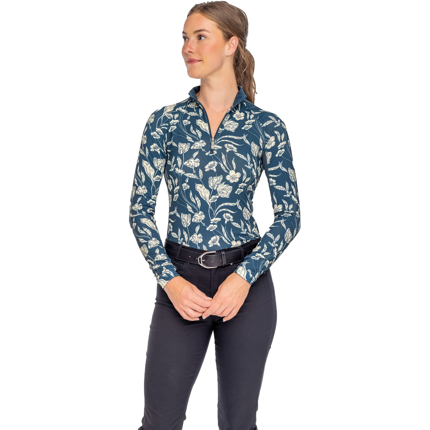 Bold, beautiful, and performance-ready, the Kastel Denmark Sailor Blue French Tulip Quarter Zip Long Sleeve Top brings a fresh, modern twist to classic equestrian style. With its rich Art Nouveau-inspired print, breathable mesh sleeves, and soft four-way stretch, this top is made for long days in the saddle and sun.
