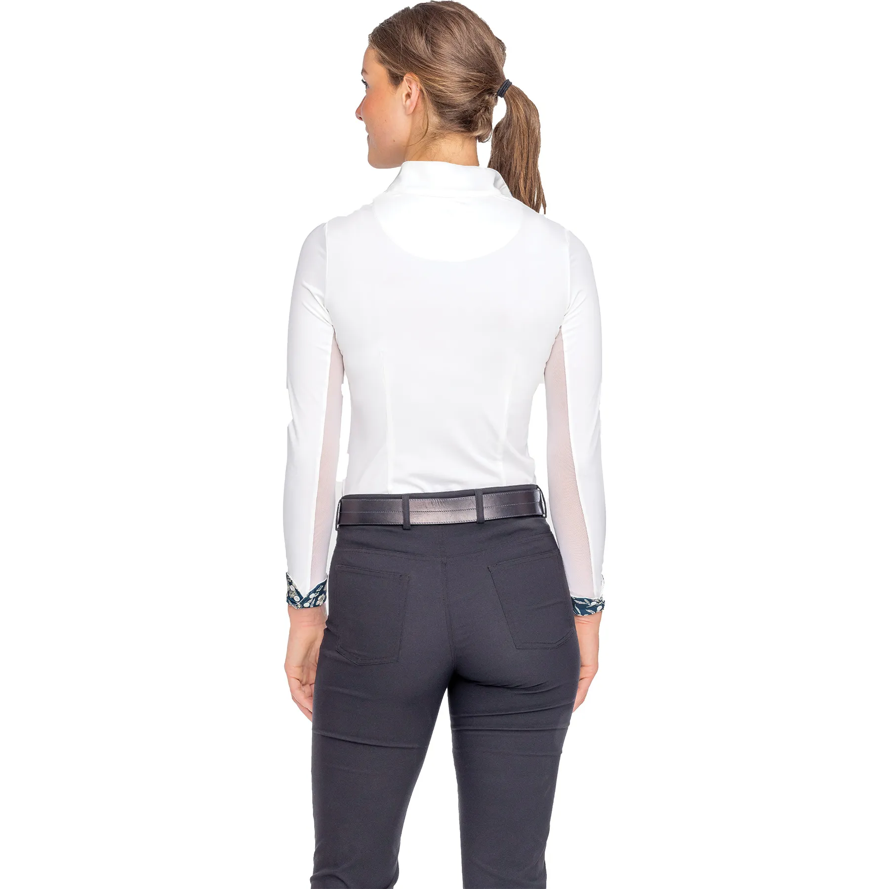 Step into sun-smart performance with the Kastel Denmark Sailor Blue French Tulip Quarter Zip Tailored Shirt. Featuring a fresh Art Nouveau-inspired print and cooling mesh short sleeves, this tailored riding top is your go-to for polished looks and all-day comfort in the saddle.